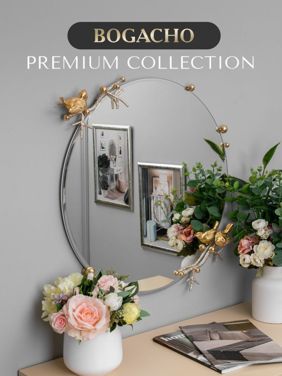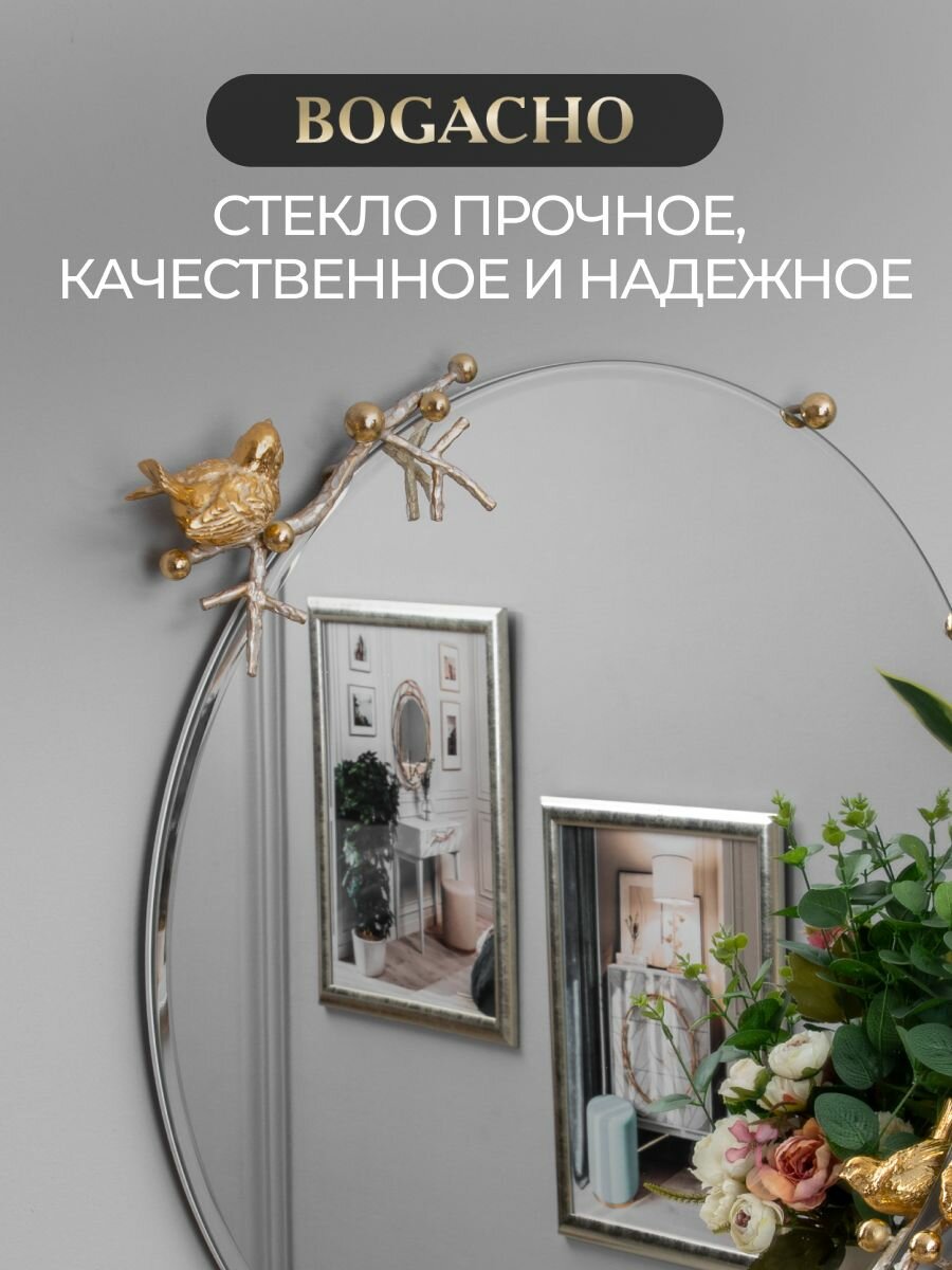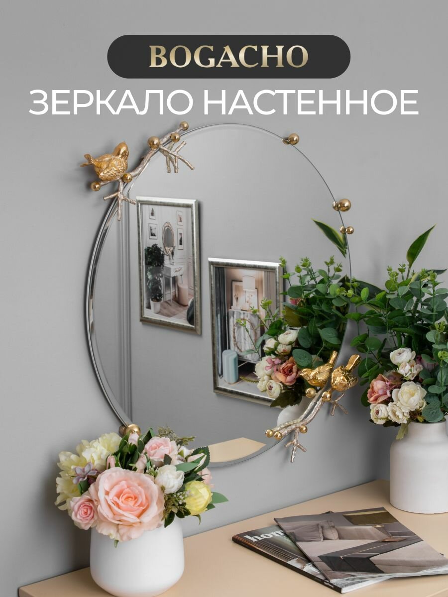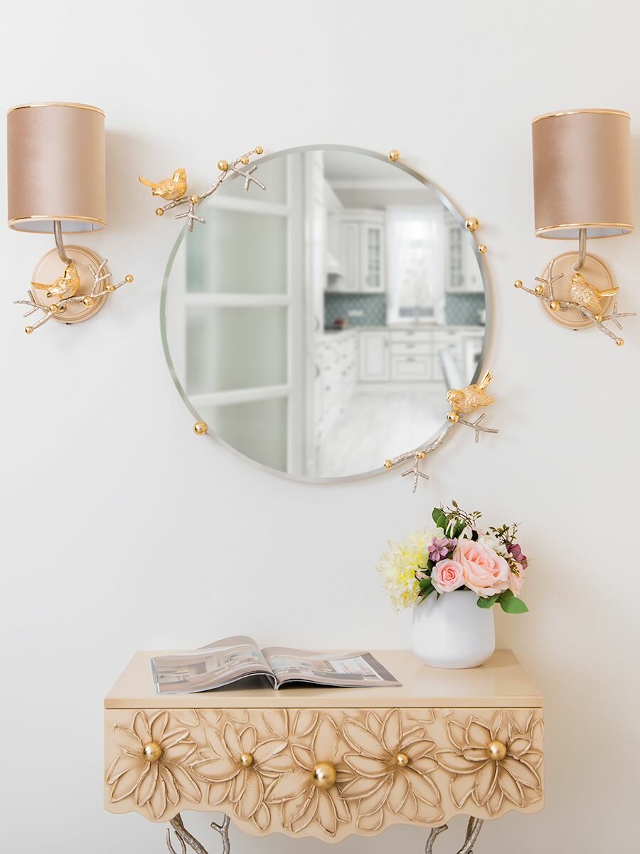 Круглое настенное зеркало Bogacho Терра с птичками и веточками для украшения интерьера прихожей и коридора интересное: