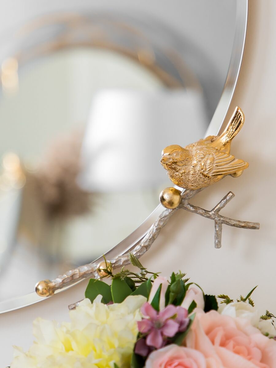 Купить Круглое настенное зеркало Bogacho Терра с птичками и веточками для украшения интерьера прихожей и коридора