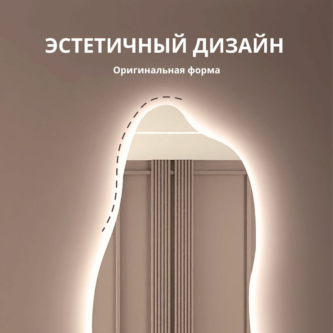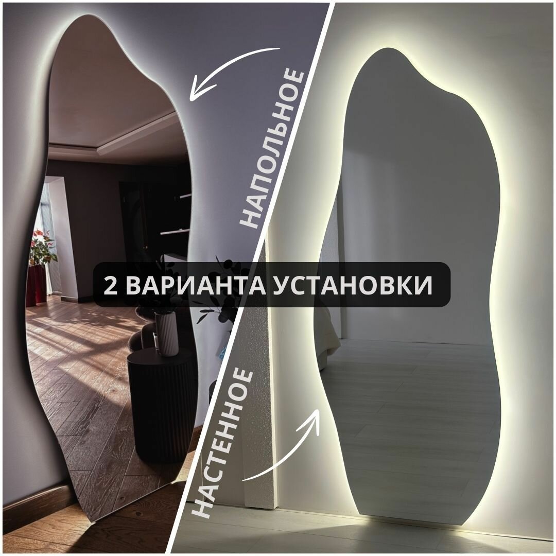 Бесформенное зеркало ассиметричной формы с подсветкой волнистое 170х70 напольное/настенное макияжное косметическое