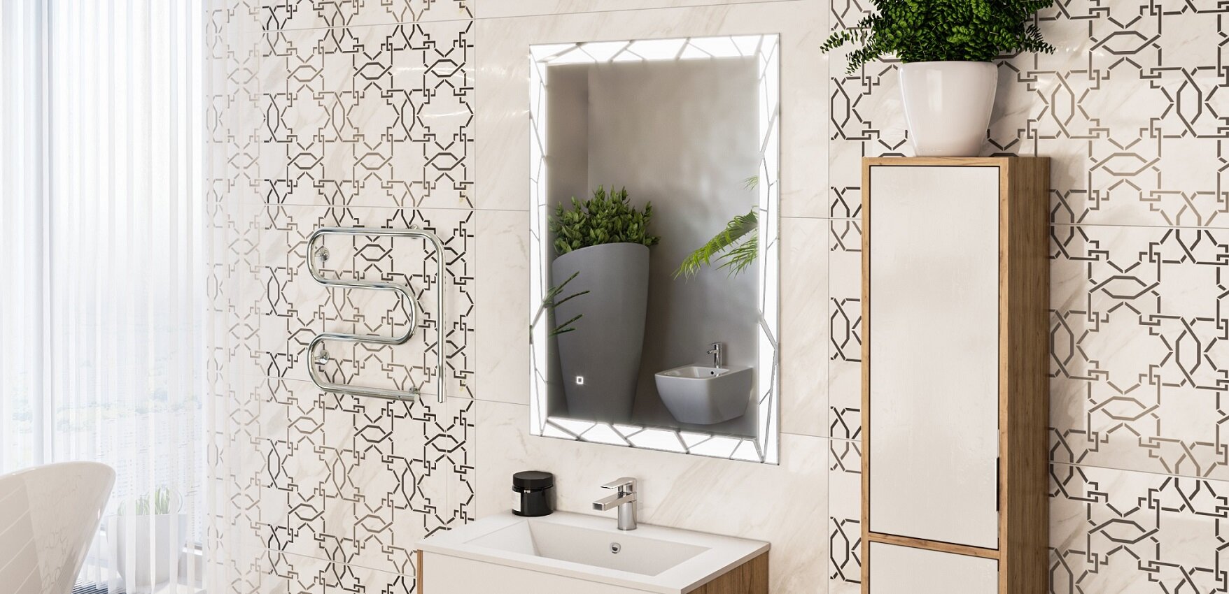 Зеркало настенное для ванной КерамаМане 70*100 см с холодной подсветкой 6000 К с сенсорной кнопкой
