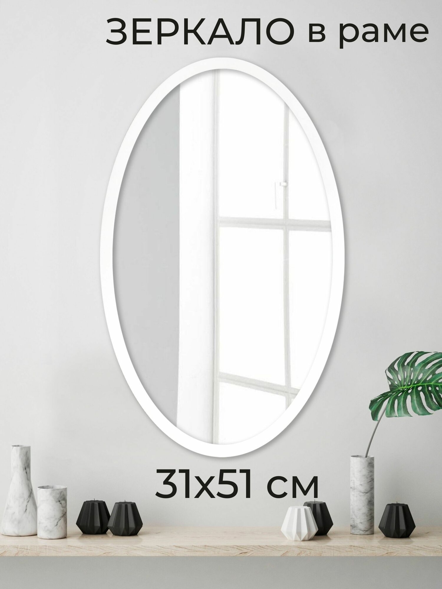 Зеркало настенное овальное интерьерное в раме Мастер Рио, 31х51 см, белый интересное: