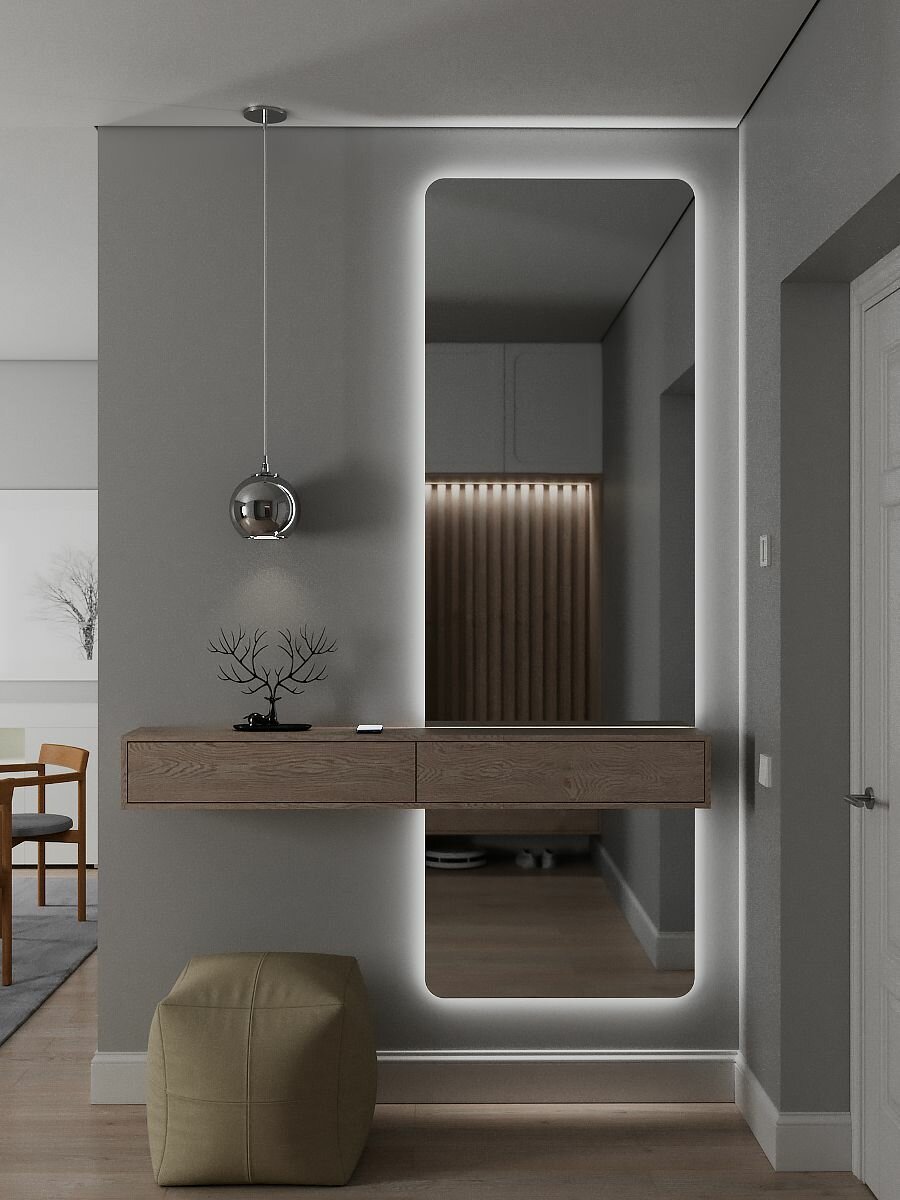 Зеркало настенное в гостиную с подсветкой в полный рост 220х80 см в прихожую или спальню без рамы