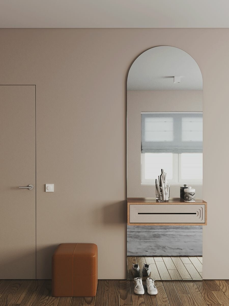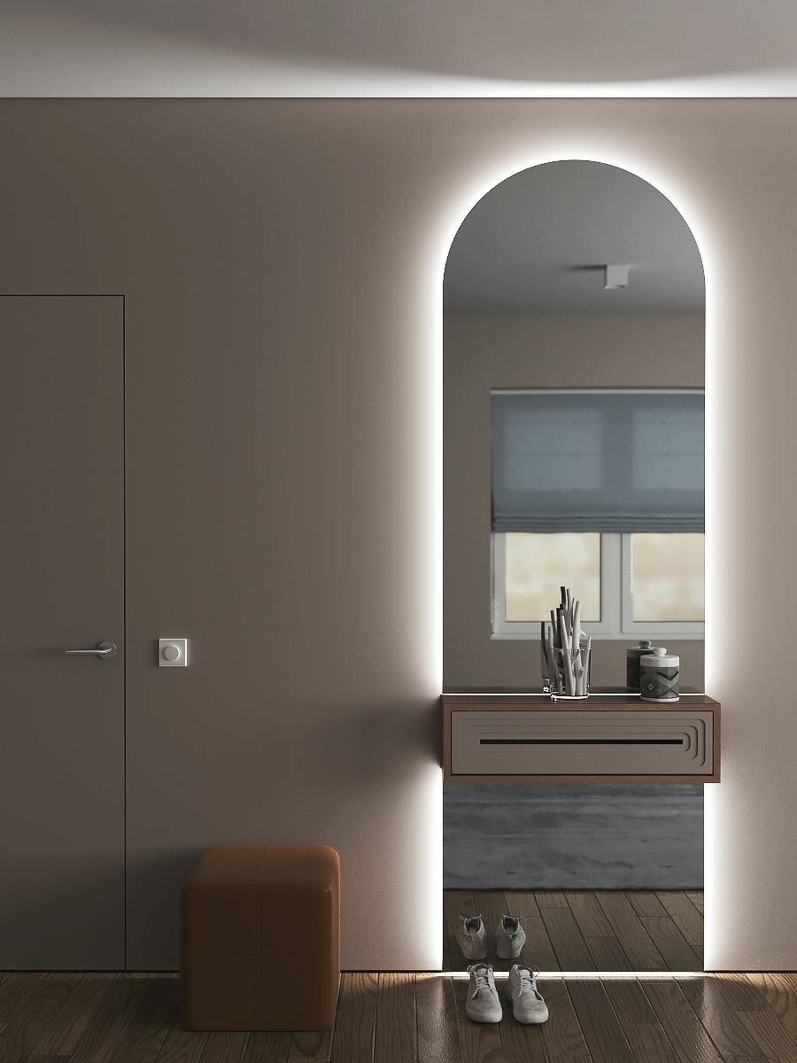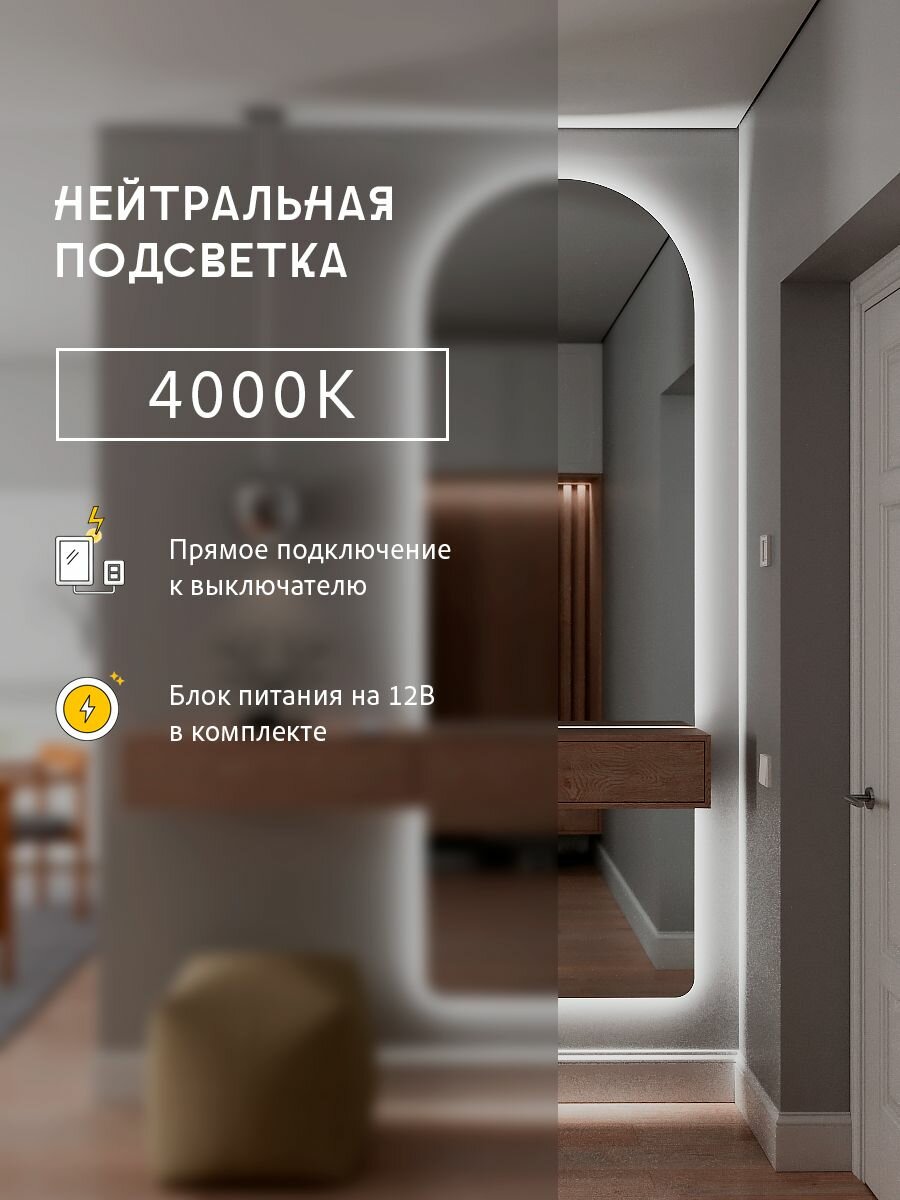 Арочное настенное зеркало с подсветкой в полный рост (80×220 см) для прихожей, и гардеробной, дизайнерское без рамы