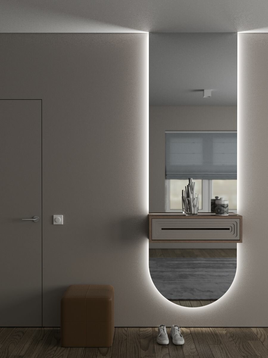 СохранитьБольшое арочное зеркало Glassberry с подсветкой в полный рост 80x220 см дизайнерское настенное зеркало без рамы интересное: