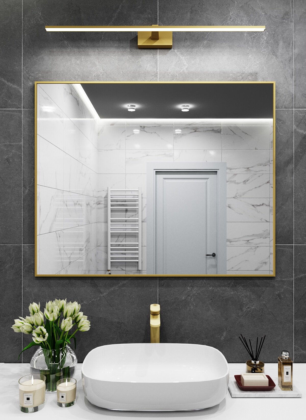 Зеркало в алюминиевой раме настенное ONE MIRROR 90х40 см. Золото