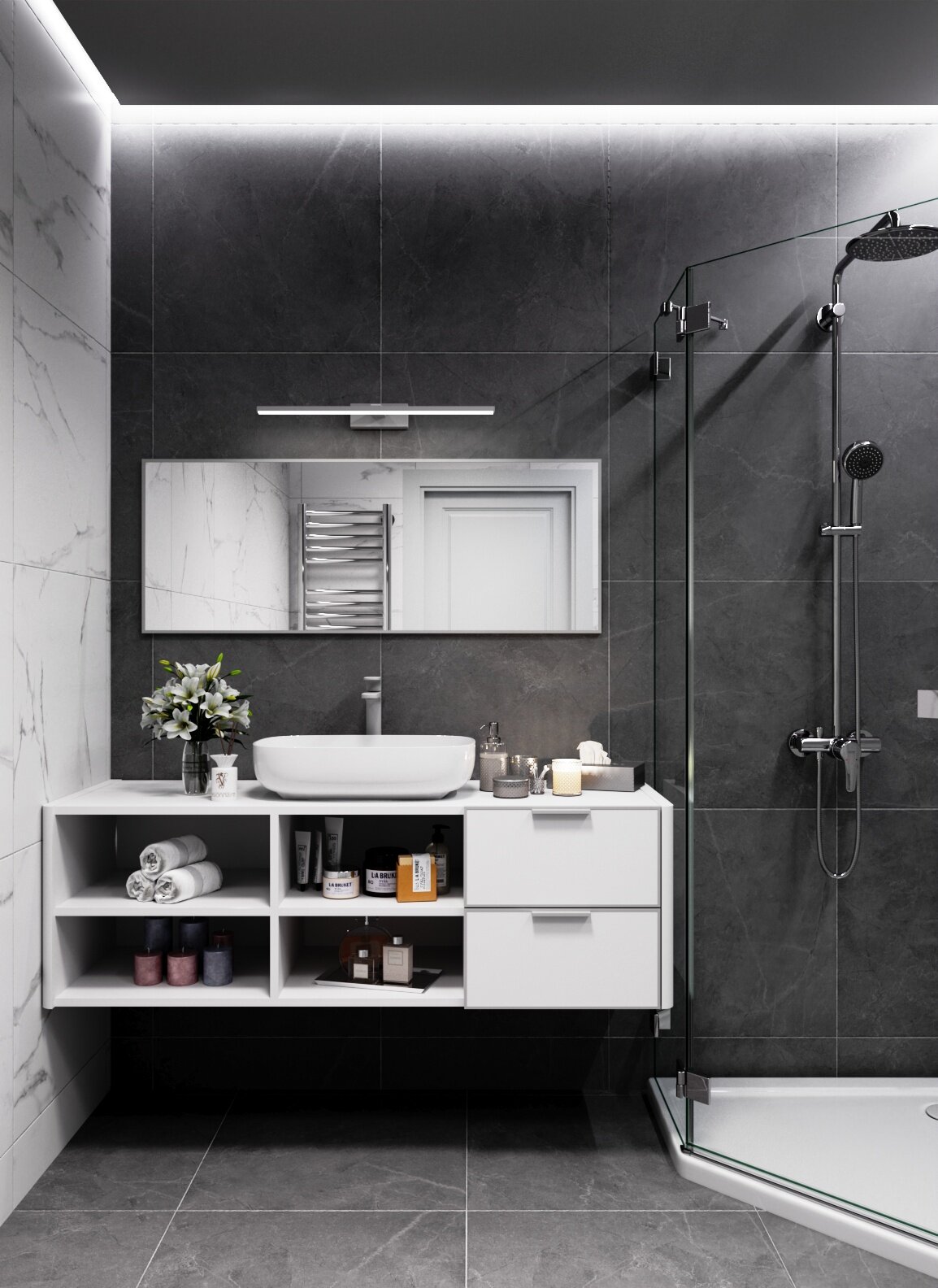 AuraMira Зеркало Olivia 120*40 "парящее" для ванной