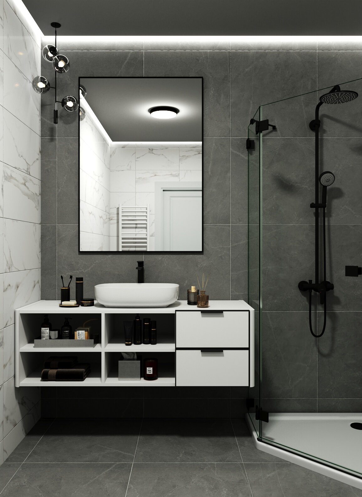 Зеркало в алюминиевой раме настенное ONE MIRROR 110х60 см. Черное