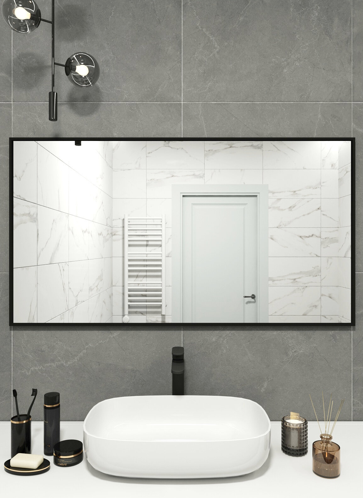 Зеркало в алюминиевой раме настенное ONE MIRROR 110х60 см. Черное