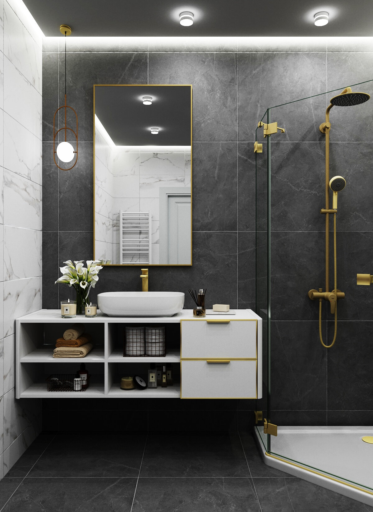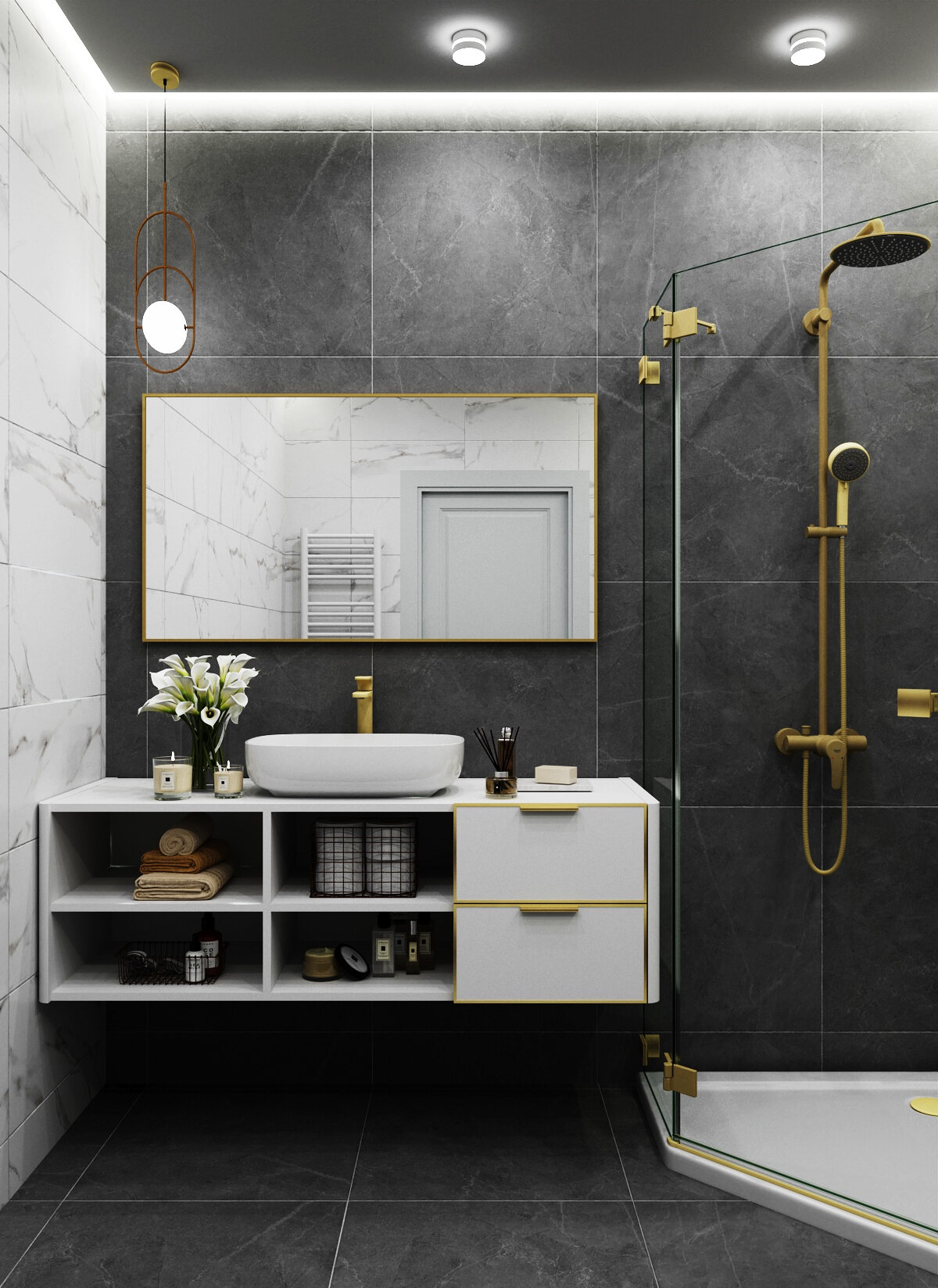 Зеркало в алюминиевой раме настенное ONE MIRROR 90х40 см. Золото