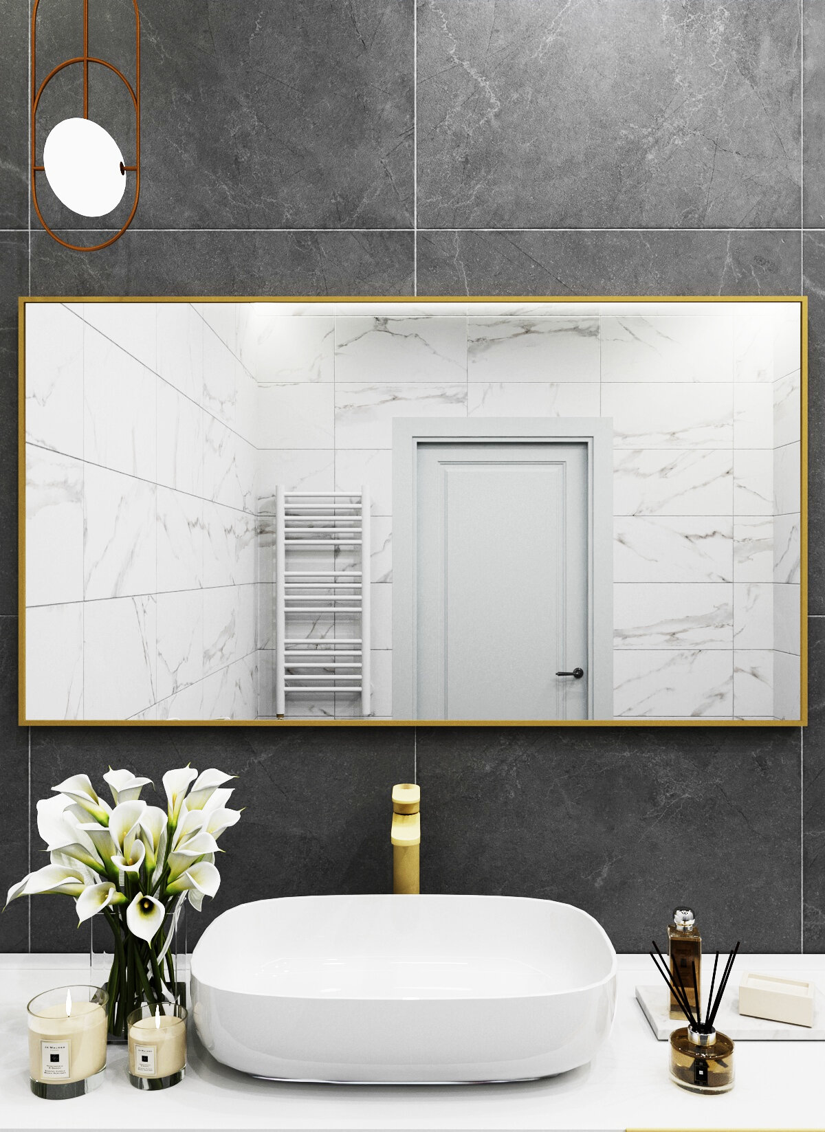Купить Зеркало в алюминиевой раме настенное ONE MIRROR 120х70 см. Золото