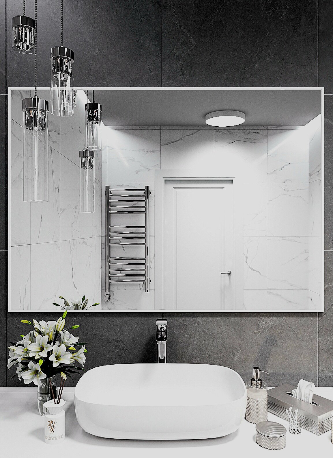 Зеркало в алюминиевой раме настенное ONE MIRROR 110х60 см. Белое