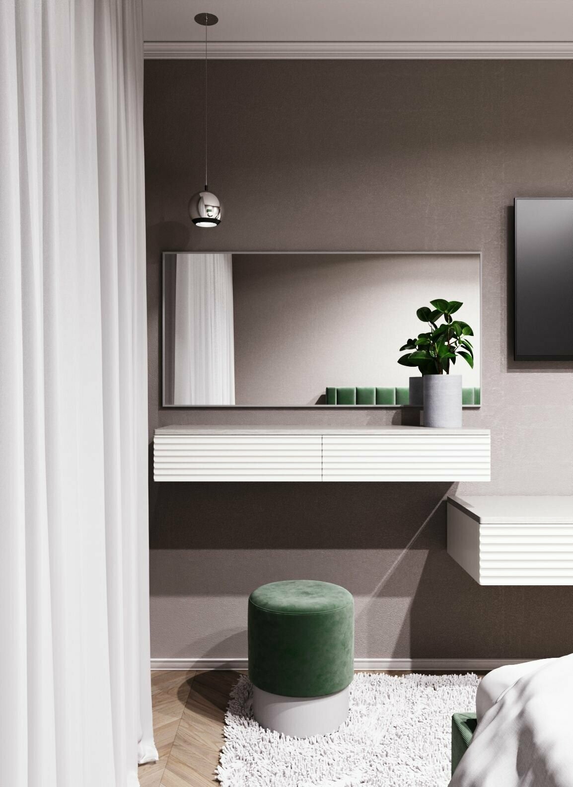 Зеркало интерьерное в алюминиевой раме настенное ONE MIRROR 160х40см. Белое