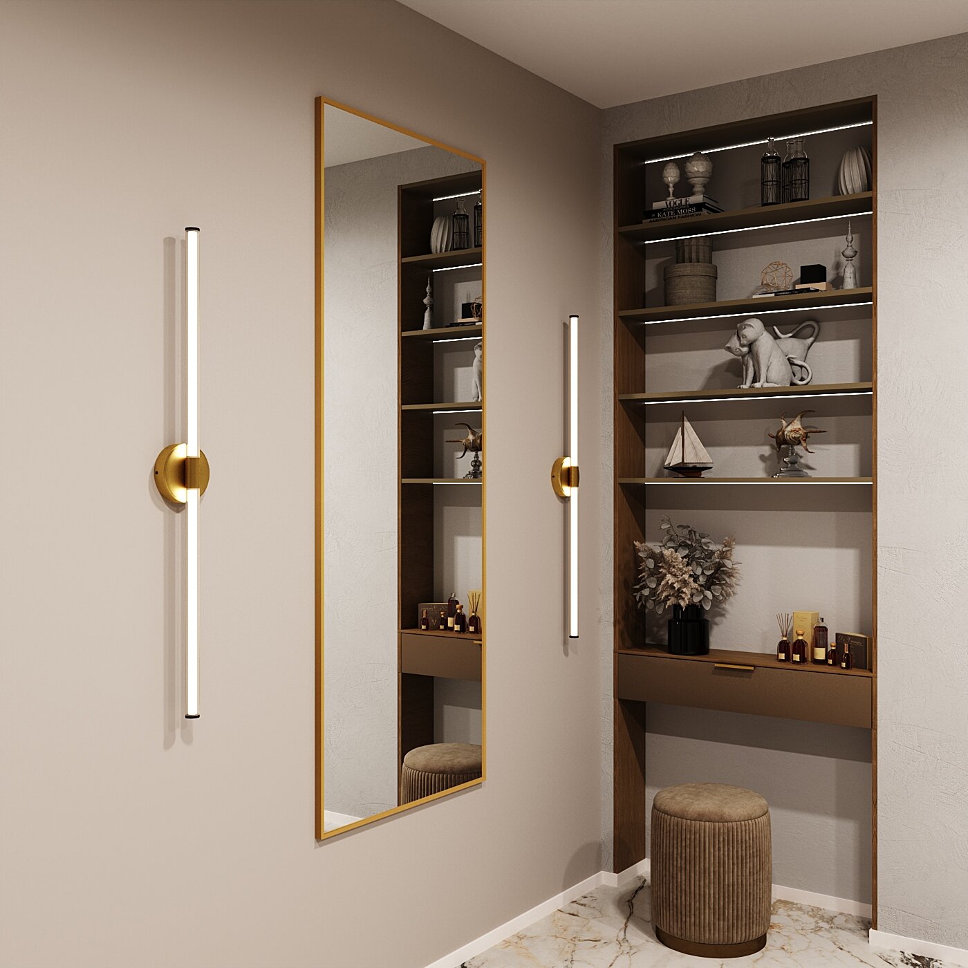 Зеркало в алюминиевой раме настенное ONE MIRROR 140х40 см. Золото