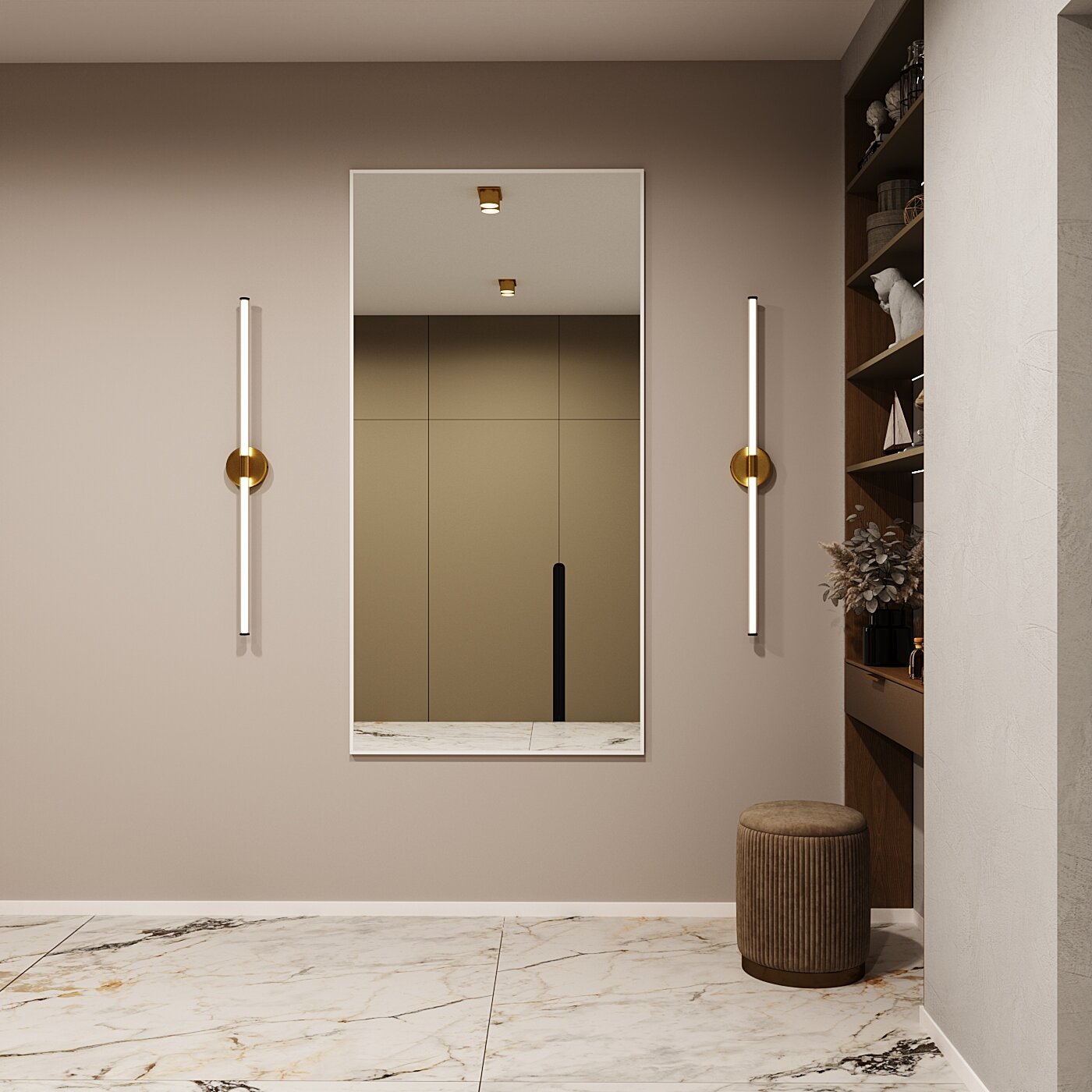 Зеркало в алюминиевой раме настенное ONE MIRROR 200х60 см. Золото