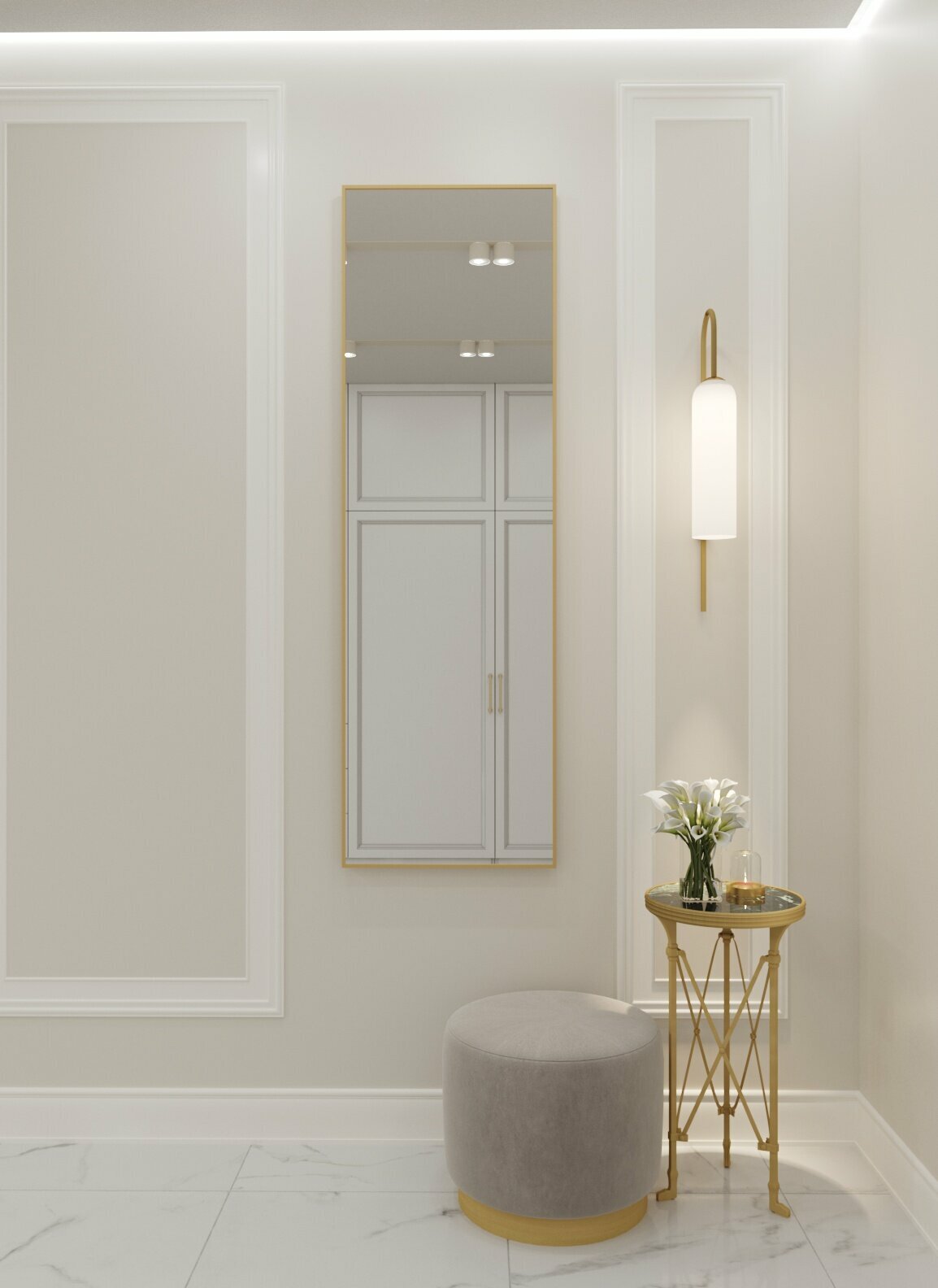 Купить Зеркало интерьерное в алюминиевой раме настенное ONE MIRROR 160х40см. Золото