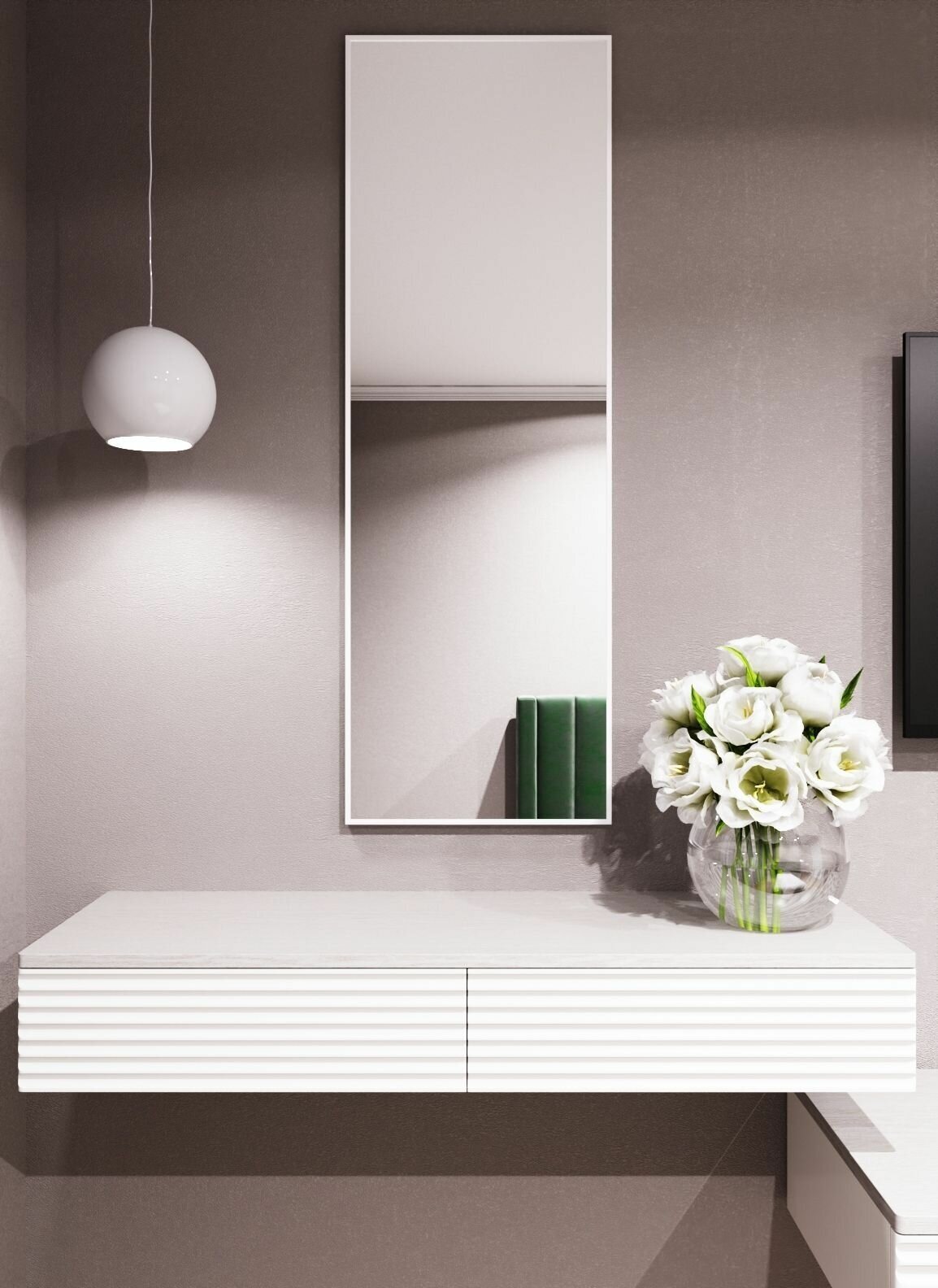 Зеркало интерьерное в алюминиевой раме настенное ONE MIRROR 160х40см. Белое