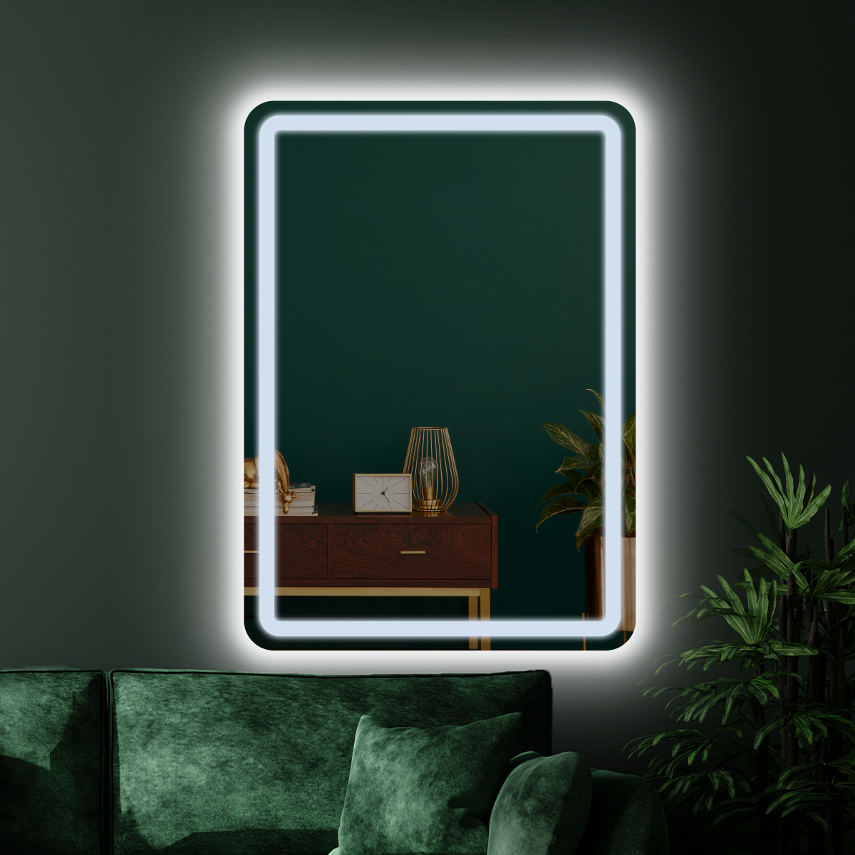 Купить Зеркало настенное Maskota для ванной прямоугольное скругленное, с фронтальной подсветкой, без сенсора, 80х60 см