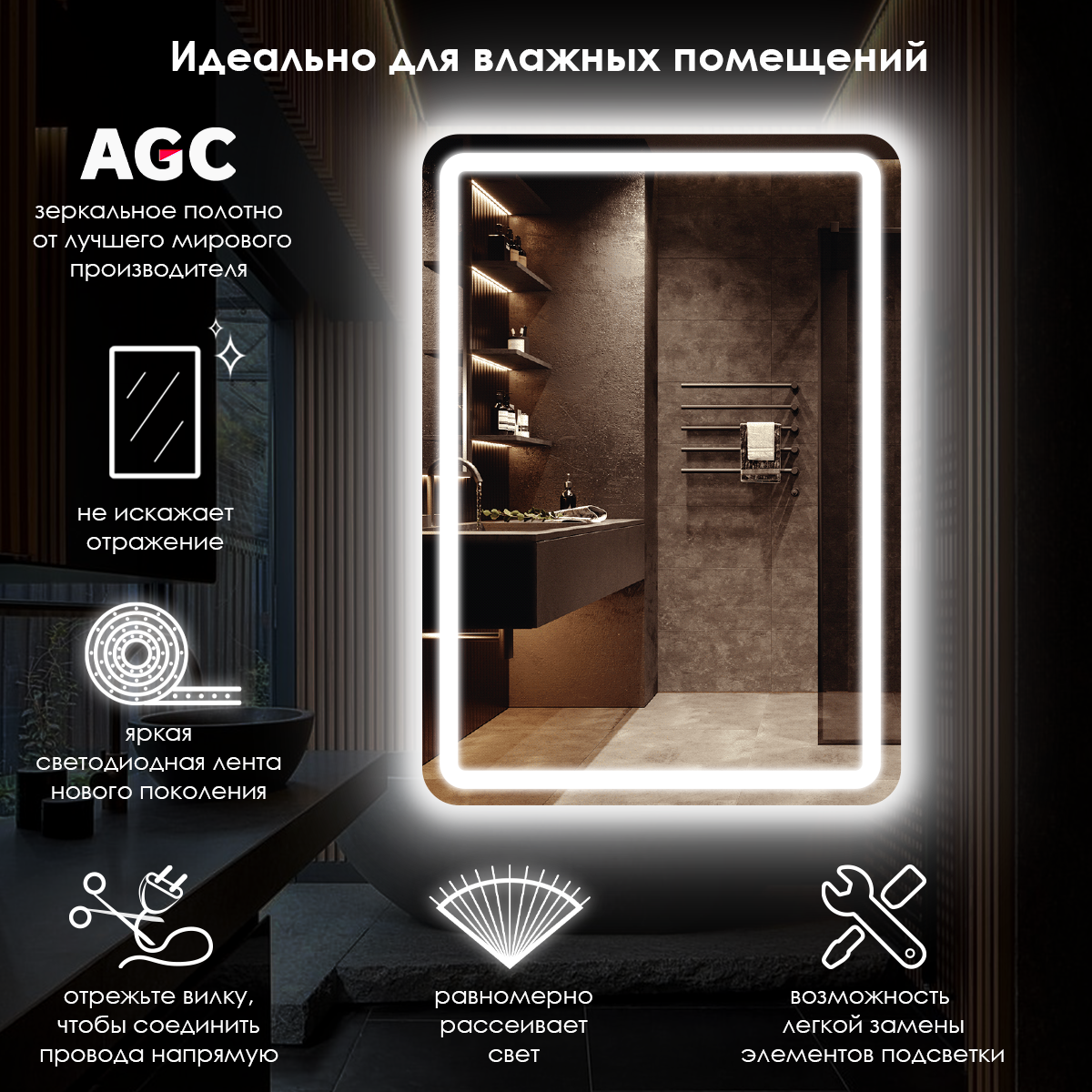 СохранитьЗеркало настенное Maskota для ванной прямоугольное скругленное, с фронтальной подсветкой, без сенсора, 80х60 см интересное: