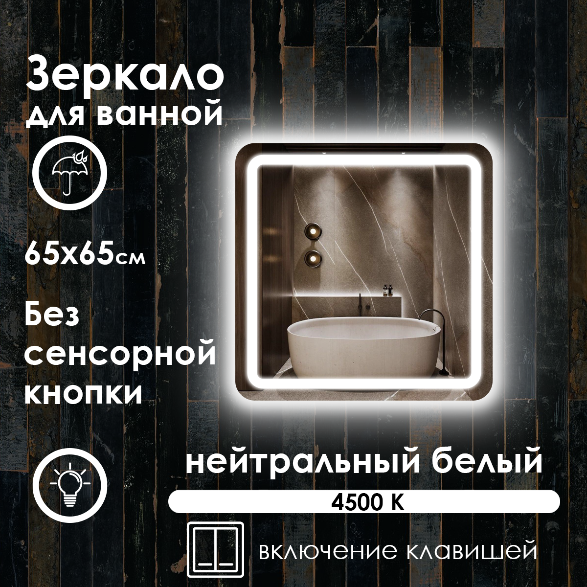 Купить Зеркало настенное Maskota для ванной квадратное скругленное, с фронтальной подсветкой, без сенсора, 65х65 см