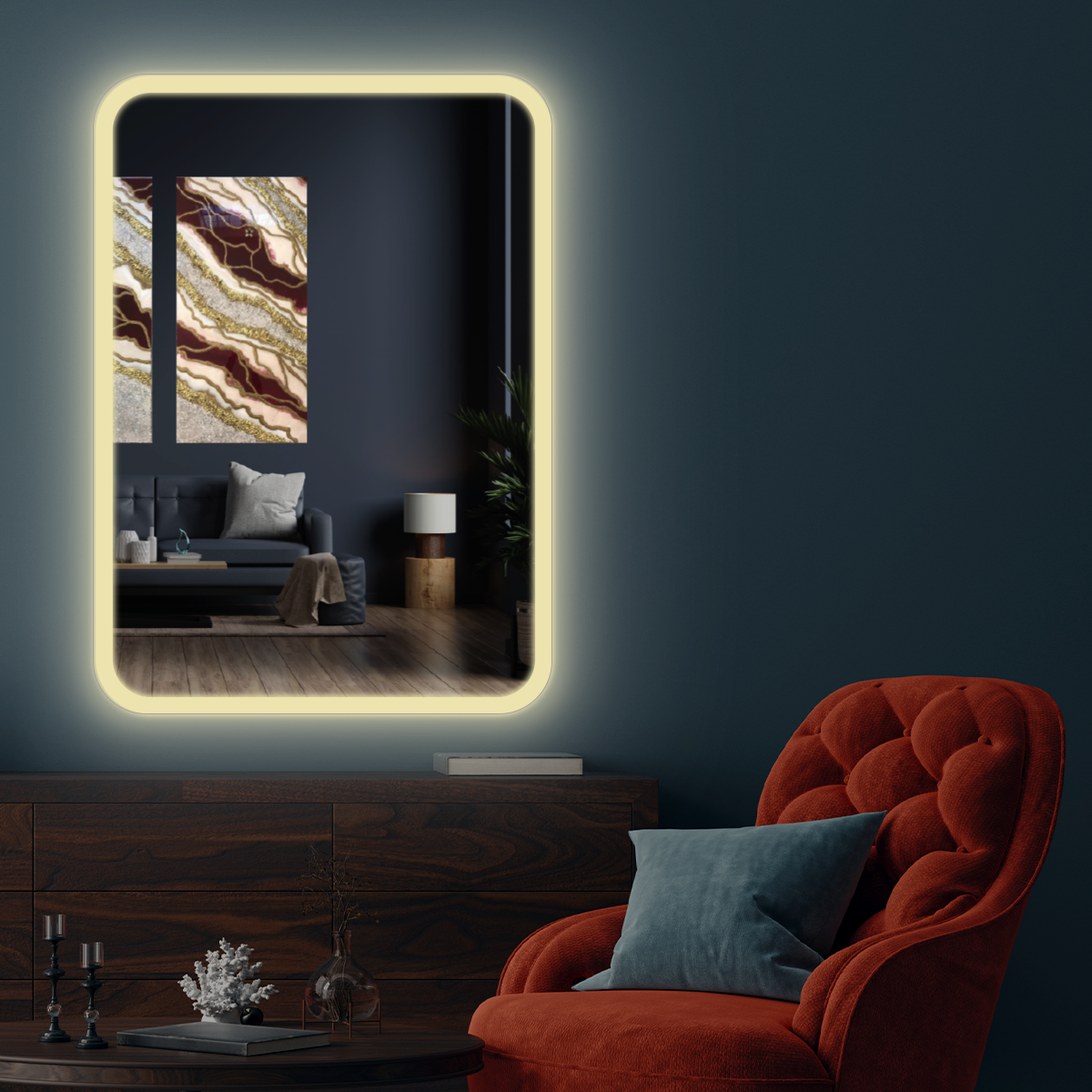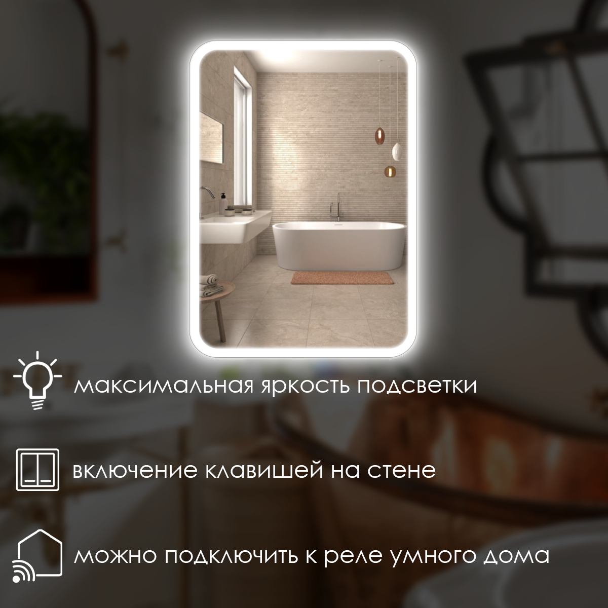 Зеркало настенное Maskota для ванной квадратное скругленное, с фронтальной подсветкой по краю, без сенсора, 60х60 см
