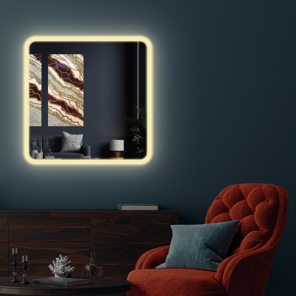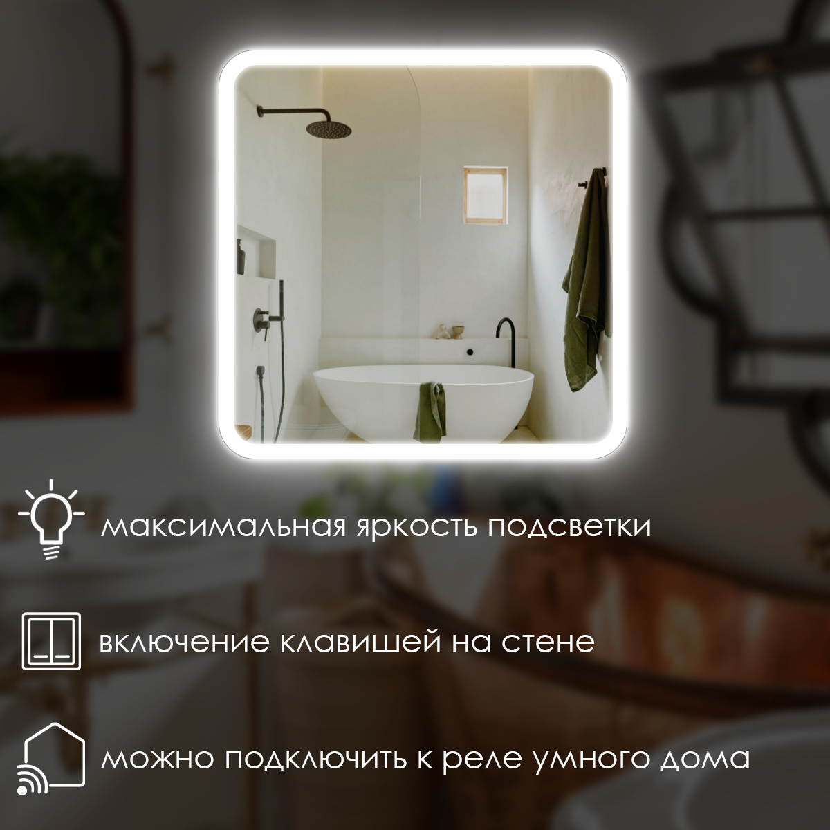 Зеркало настенное Maskota для ванной квадратное скругленное, с фронтальной подсветкой по краю, без сенсора, 60х60 см