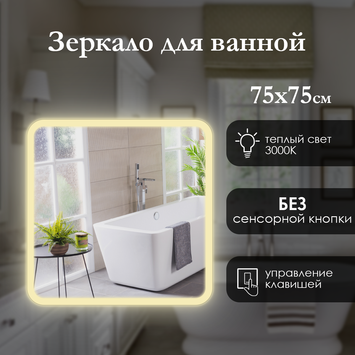 Купить Зеркало настенное Maskota для ванной квадратное скругленное, с фронтальной подсветкой по краю, без сенсора, 75х75 см