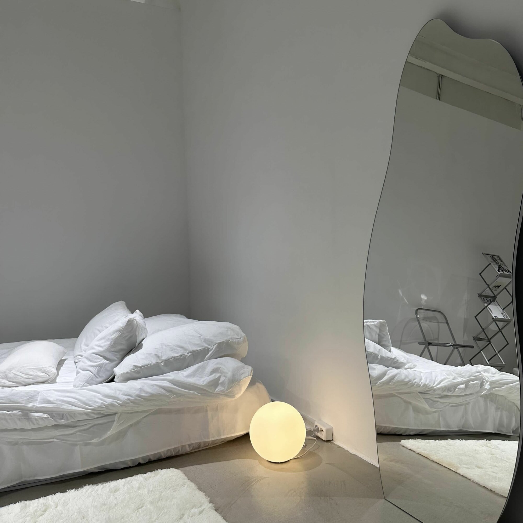 Бесформенное зеркало на подставке ассиметричной формы 170х70
