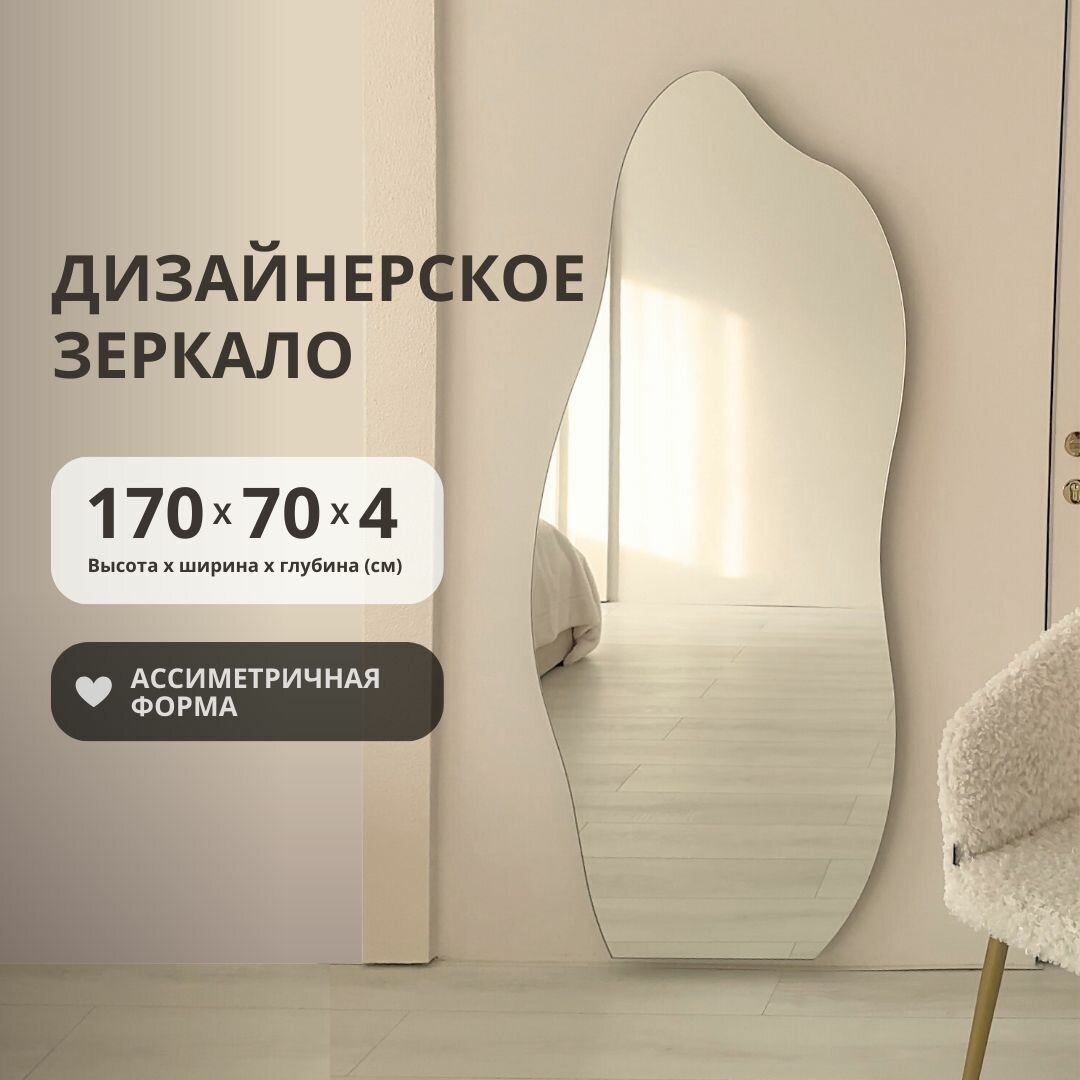 Бесформенное зеркало ассиметричной формы 170х70 волнистое без подсветки