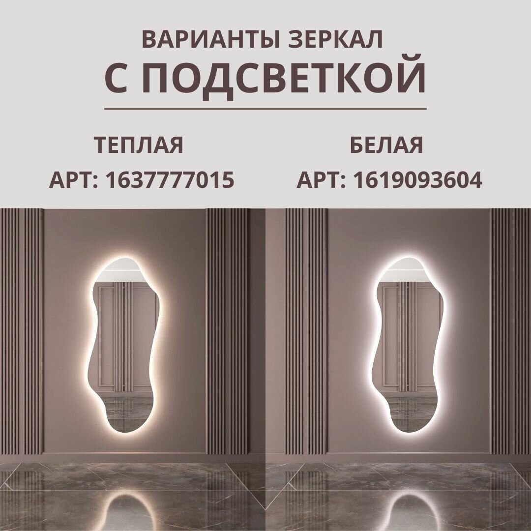 Ниже Вы можете прочитать отзывы на Бесформенное гримерное зеркало ассиметричной формы 170х70 без подсветки, ознакомится с подробными характеристиками, посмотреть интересные обзоры и фотографии на Бесформенное гримерное зеркало ассиметричной формы 170х70 без подсветки.