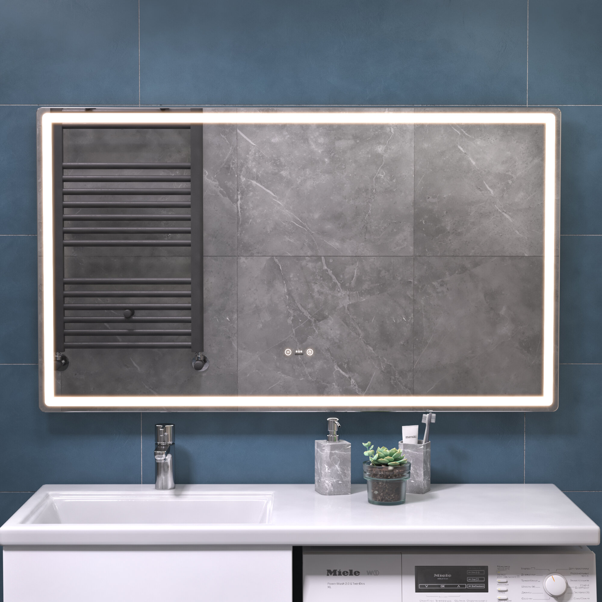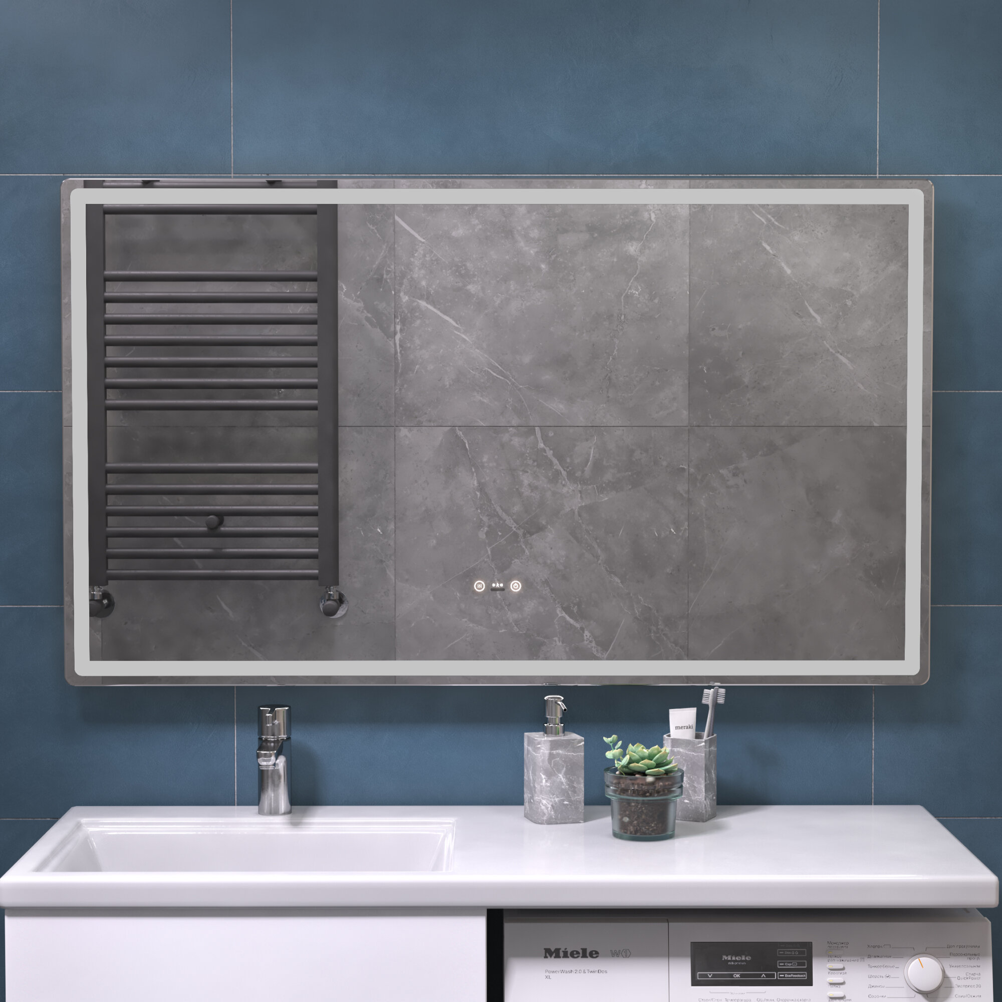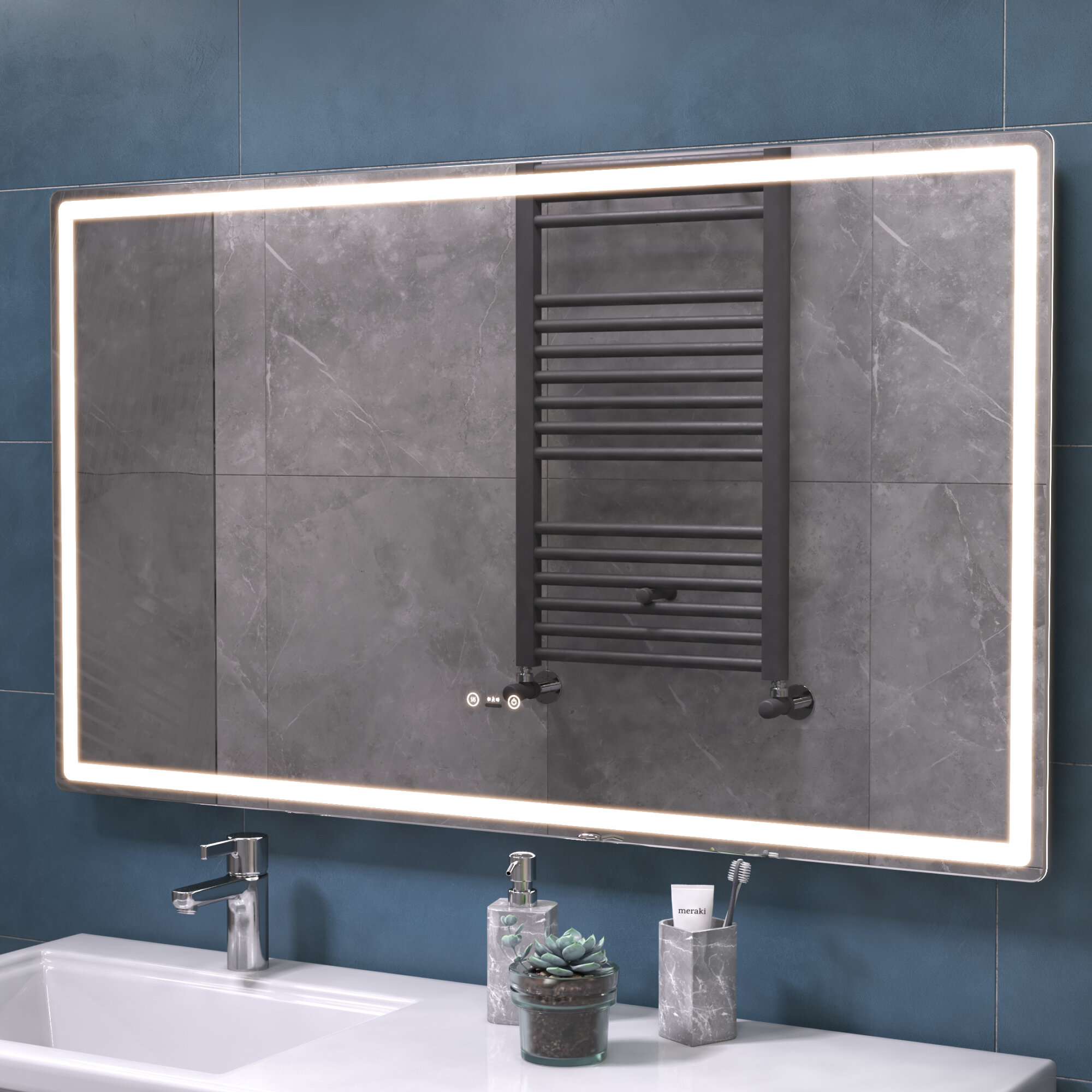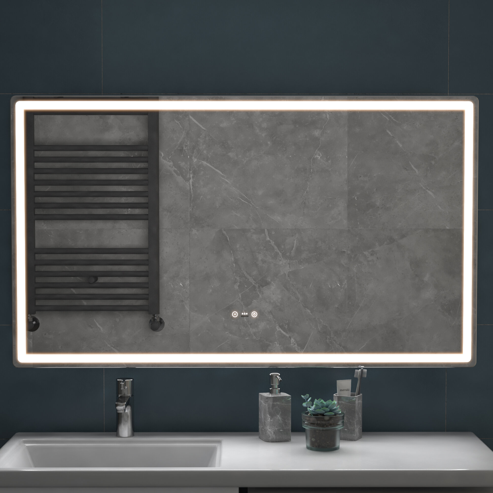 Зеркало с подсветкой в ванную 100х70 см Geometry Step с датчиком присутствия и подогревом нейтральный белый свет 5000К