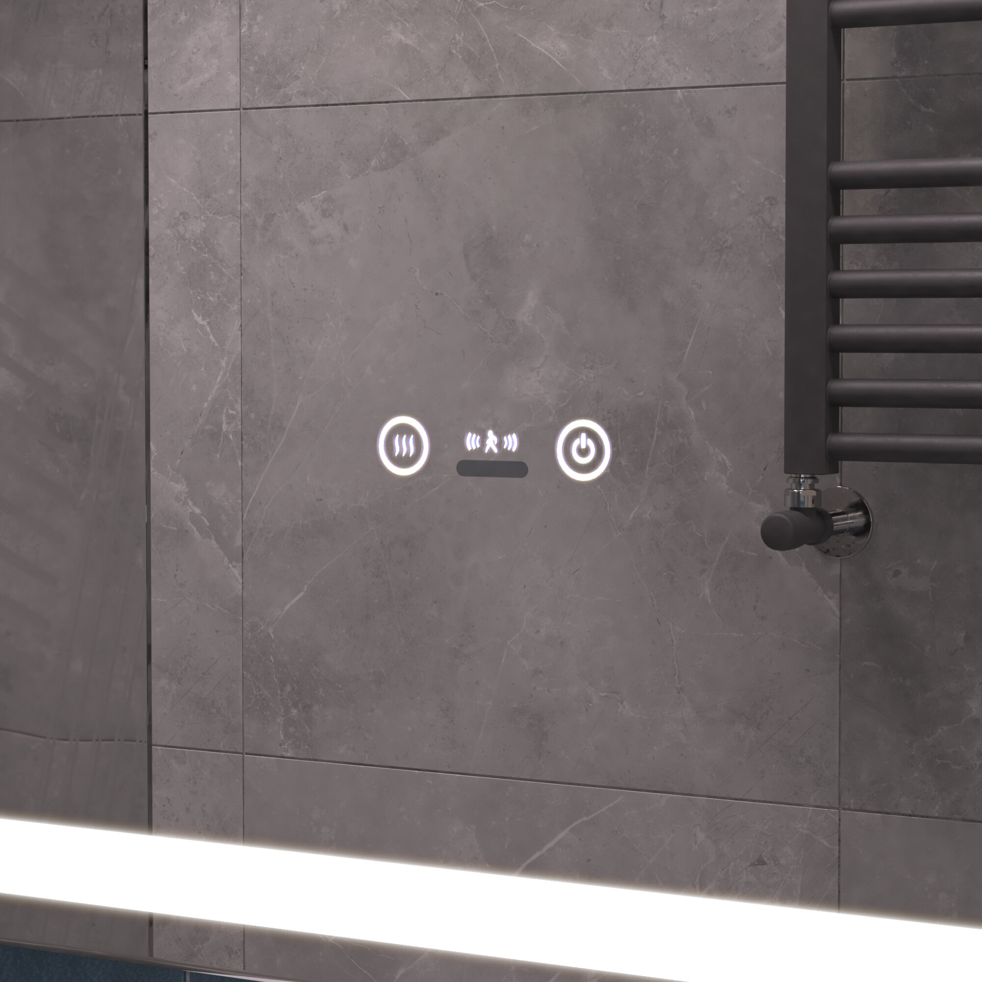 Зеркало с подсветкой в ванную 79,4х70 см Geometry Step с датчиком присутствия и подогревом нейтральный белый свет 5000К