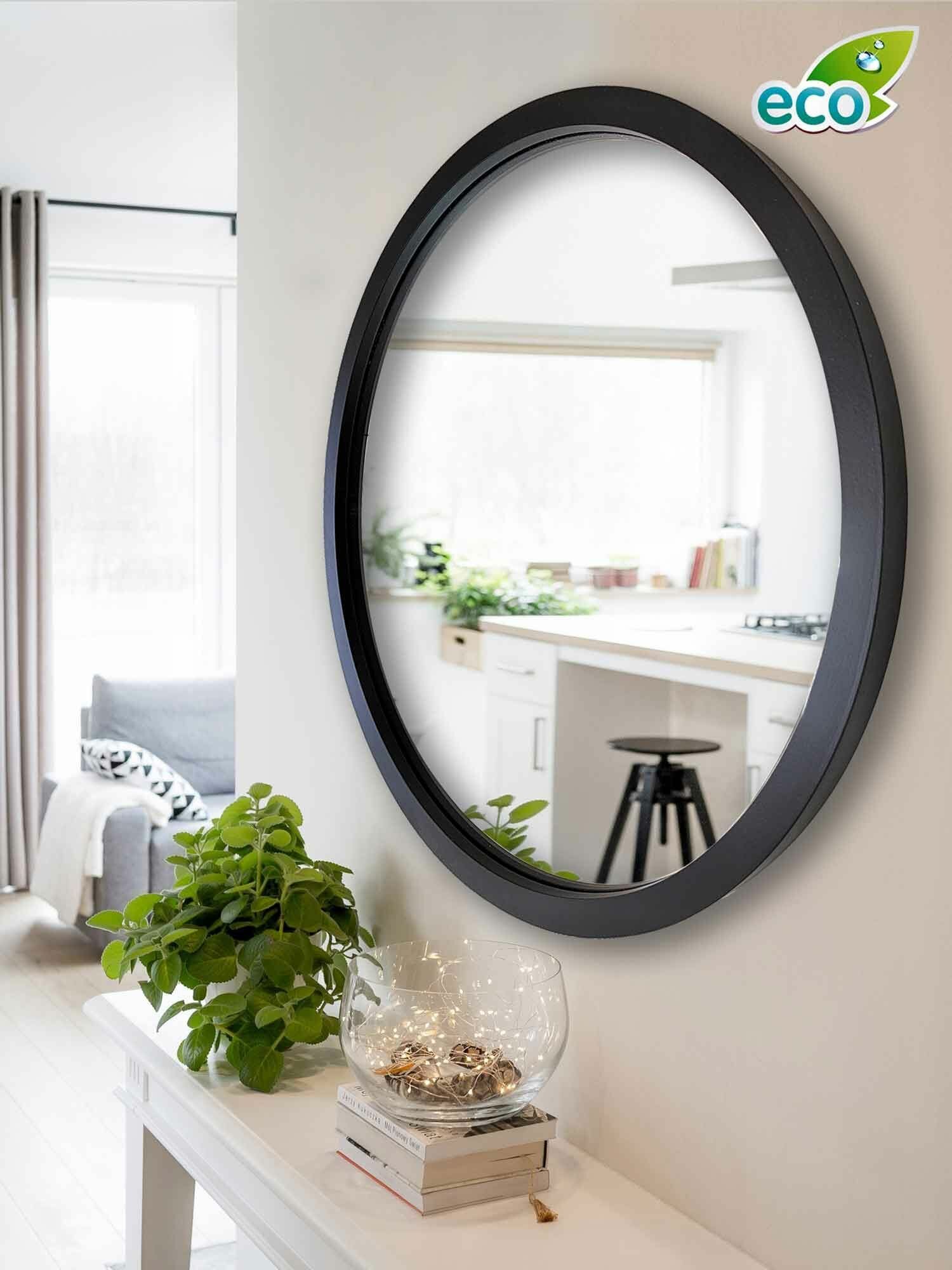 Зеркало настенное круглое в черной раме 46см. интересное:
