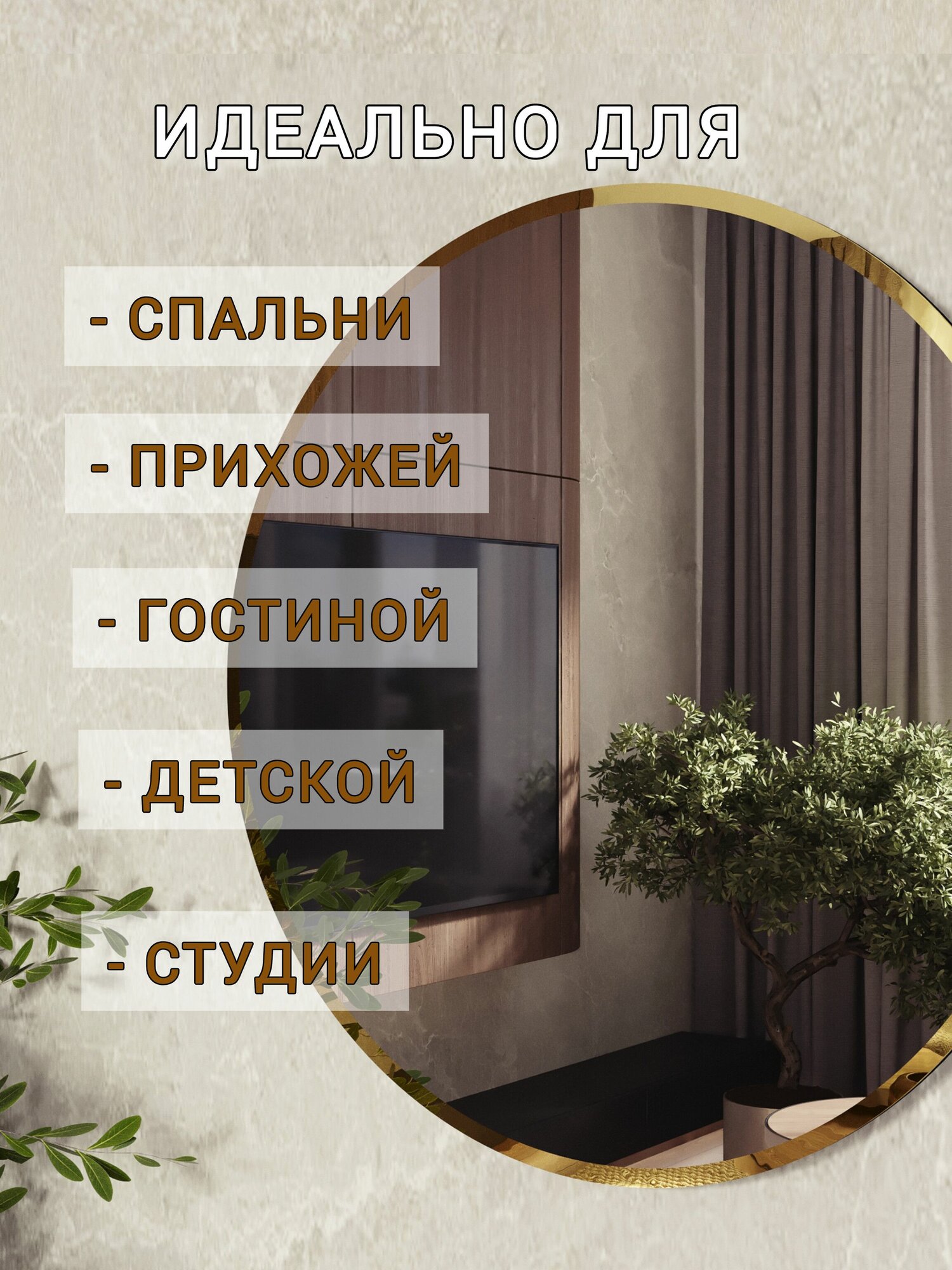 Купить MSK мебель Зеркало интерьерное "Круг", 50 см, золотой кант, 1 шт