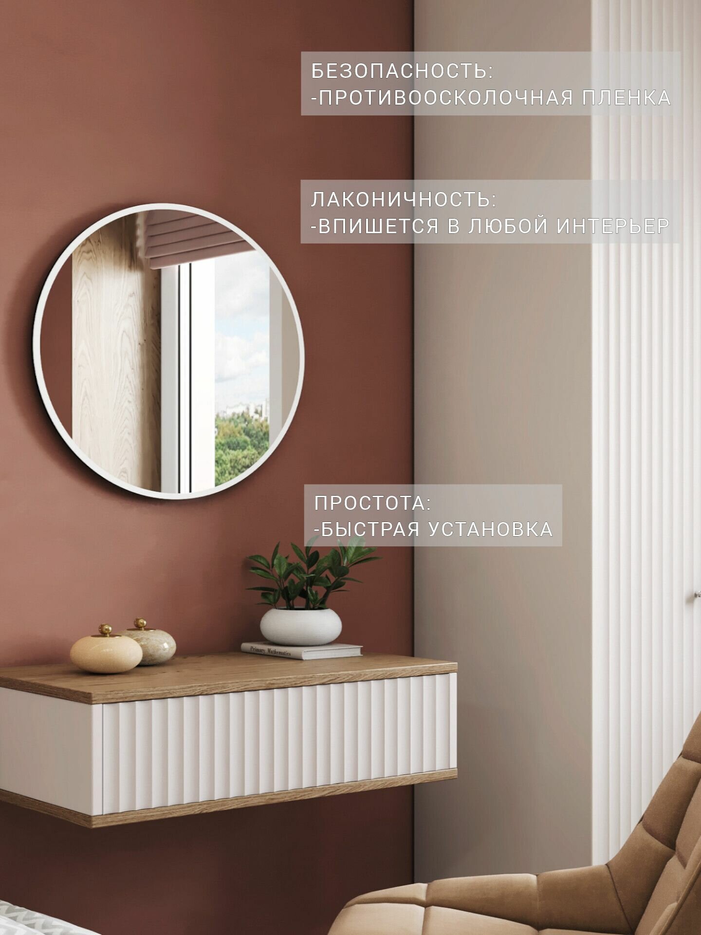 MSK мебель Зеркало интерьерное "Круг", 50 см, белый кант,1 шт интересное: