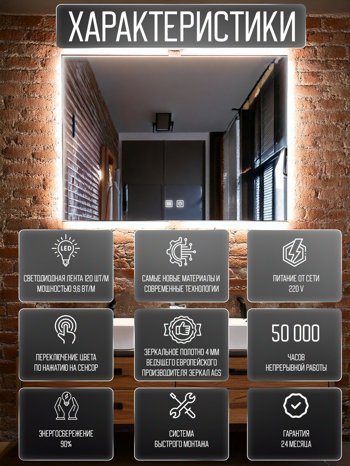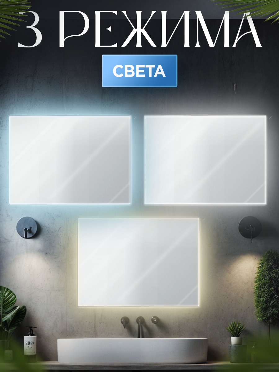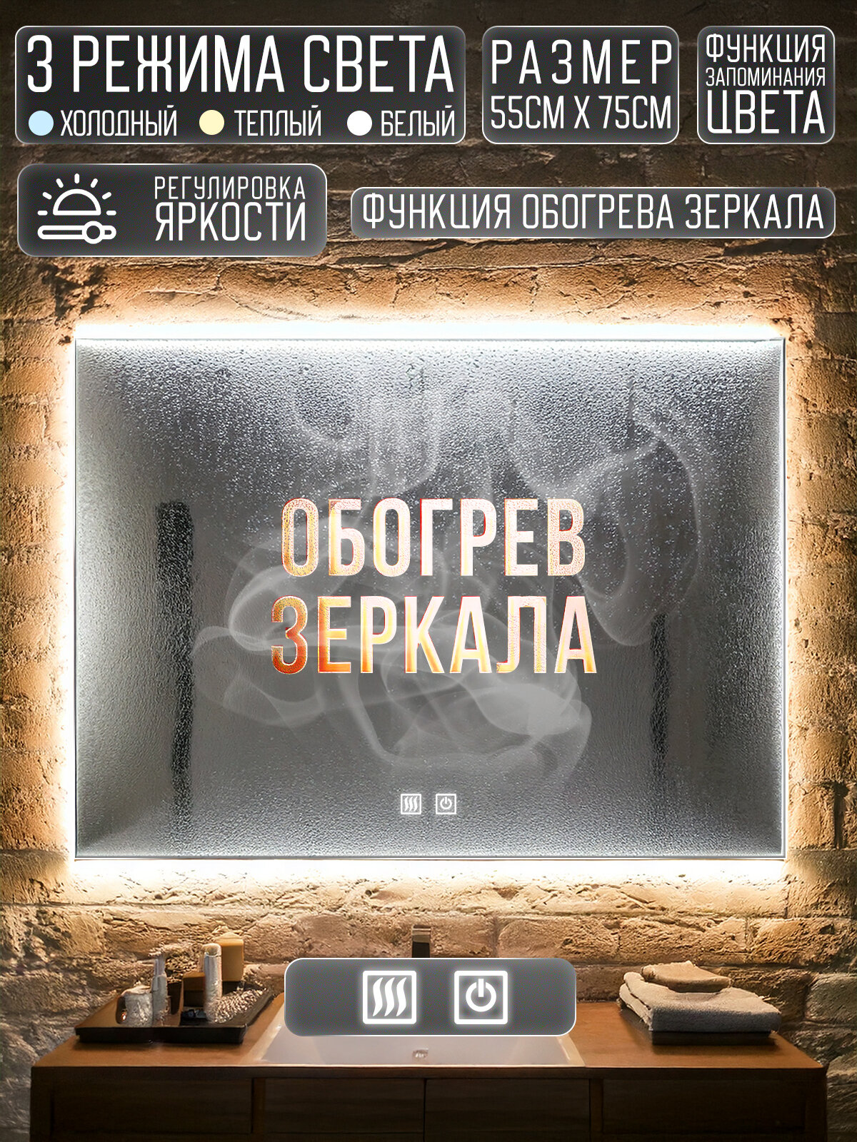 Зеркало для ванной Mirror Arts, настенное, с подсветкой, подогрев интересное: