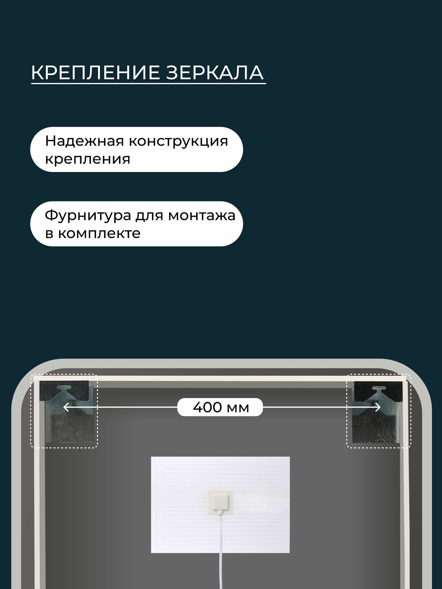 Зеркало настенное для ванной КерамаМане 70*100 см с холодной подсветкой 6000 К с сенсорной кнопкой