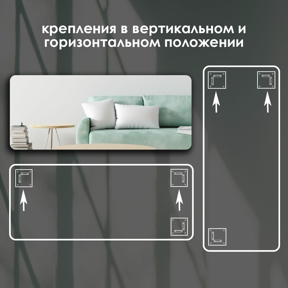 Зеркало Сфера Отражения "Lexa" c закругленными углами, 170x100см, без рамы, противоосколочное, настенное