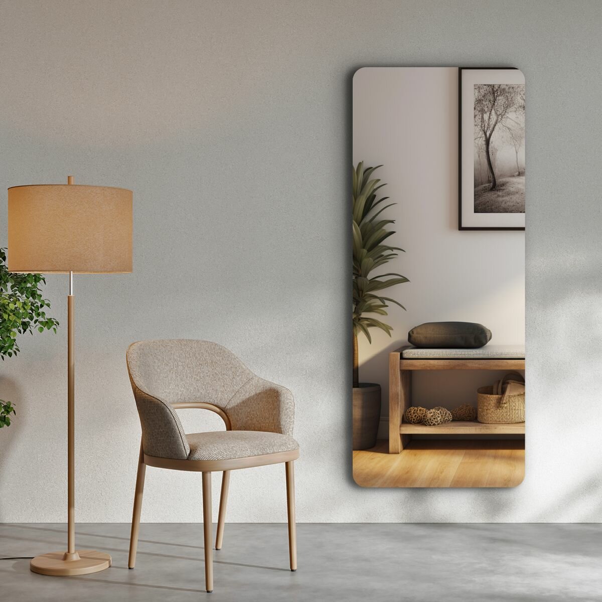 Интерьерное зеркало Сфера Отражения Lexa с закругленными углами, настенное, в полный рост, 200x80 см, без рамы
