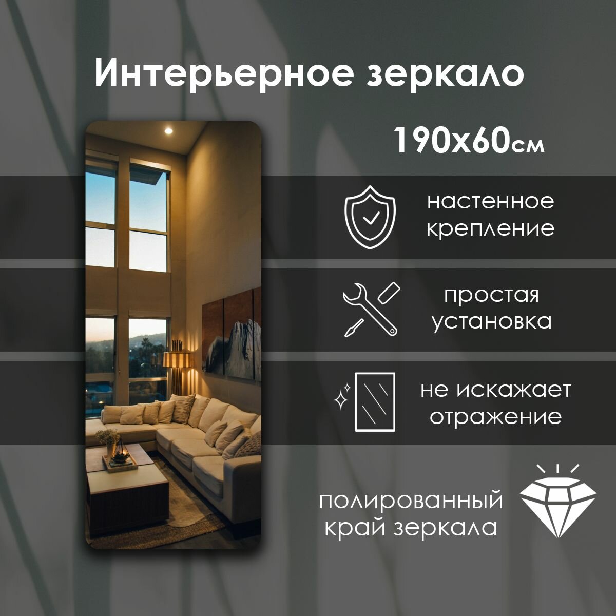 Интерьерное зеркало Сфера Отражения Lexa с закругленными углами, настенное, в полный рост, 200x80 см, без рамы