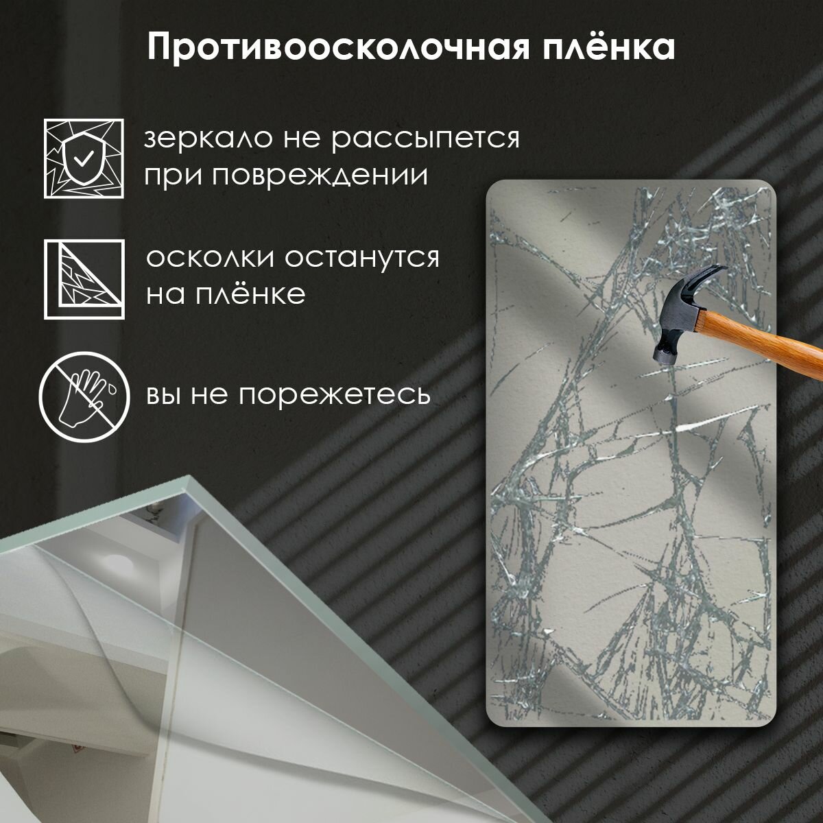 Зеркало Сфера Отражения "Lexa", прямоугольное, противоосколочное, без рамы, 70x60 см