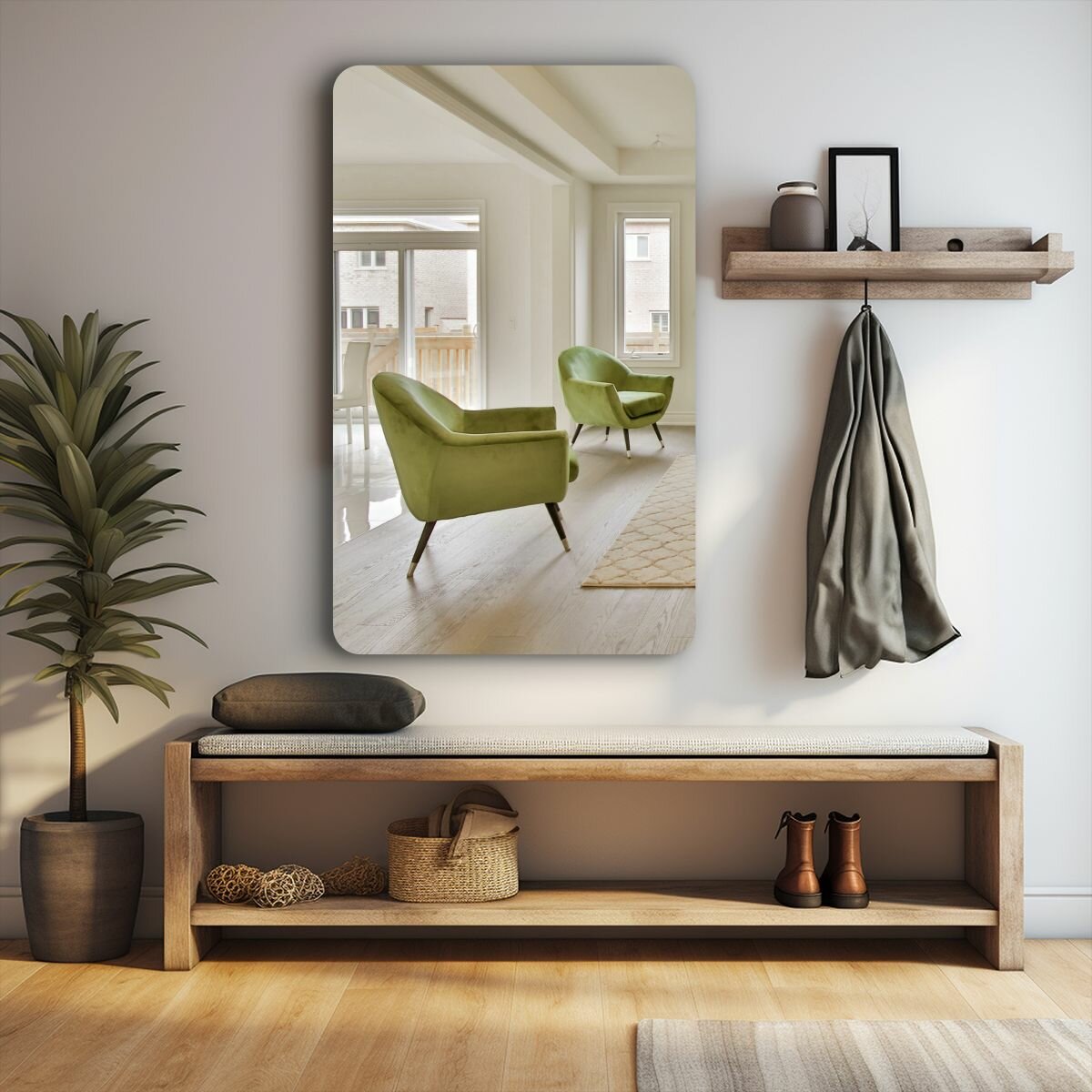 Интерьерное зеркало Сфера Отражения "Lexa", настенное, прямоугольное с закруглёнными углами , ударопрочное, 130x100см
