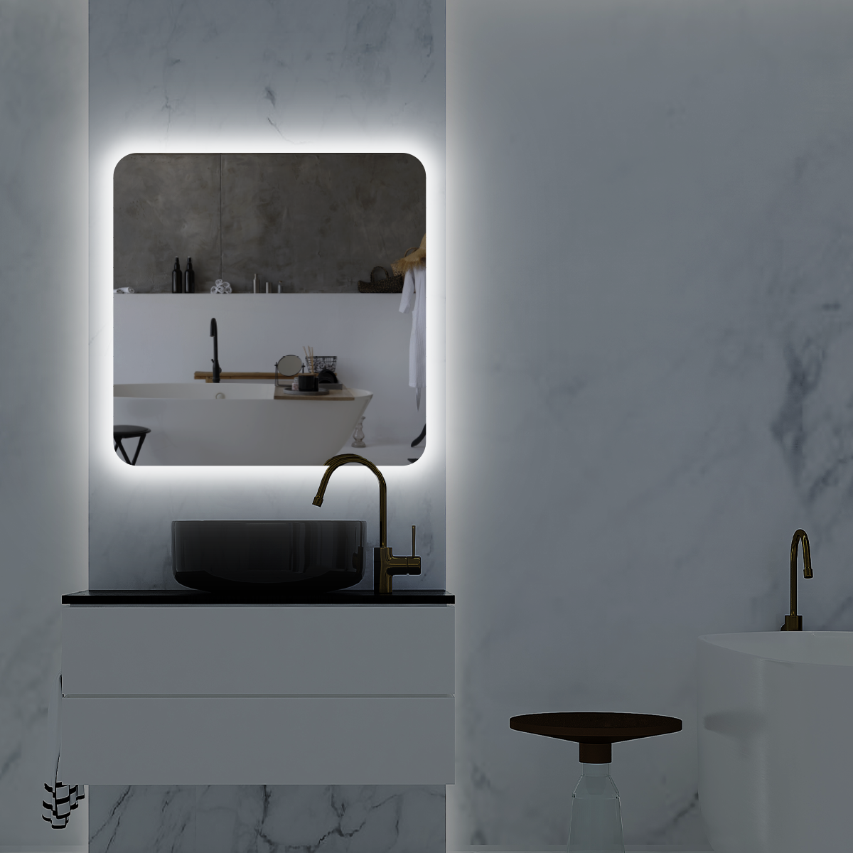 Зеркало настенное Maskota для ванной квадратное скругленное, с парящей подсветкой на стену 6000К, 70х70 см