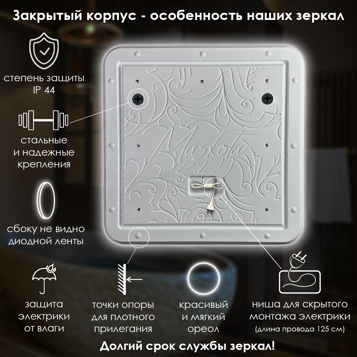 СохранитьЗеркало настенное Maskota для ванной квадратное скругленное, с парящей подсветкой на стену 6000К, 80х80 см интересное: