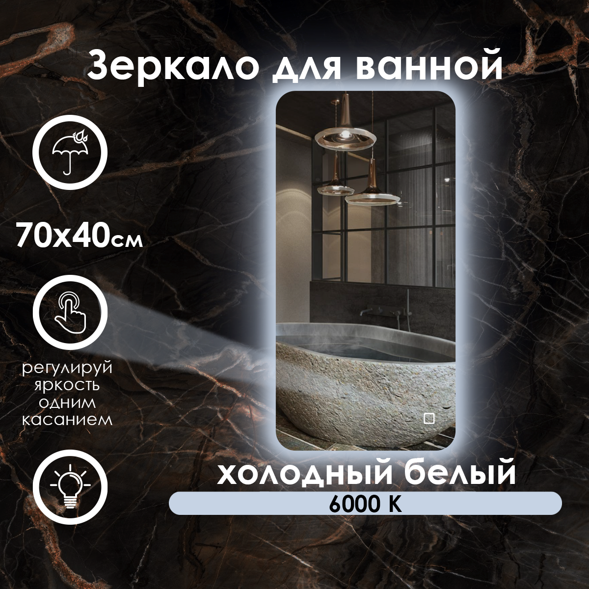 Зеркало настенное для ванной КерамаМане 70*100 см с холодной подсветкой 6000 К с сенсорной кнопкой