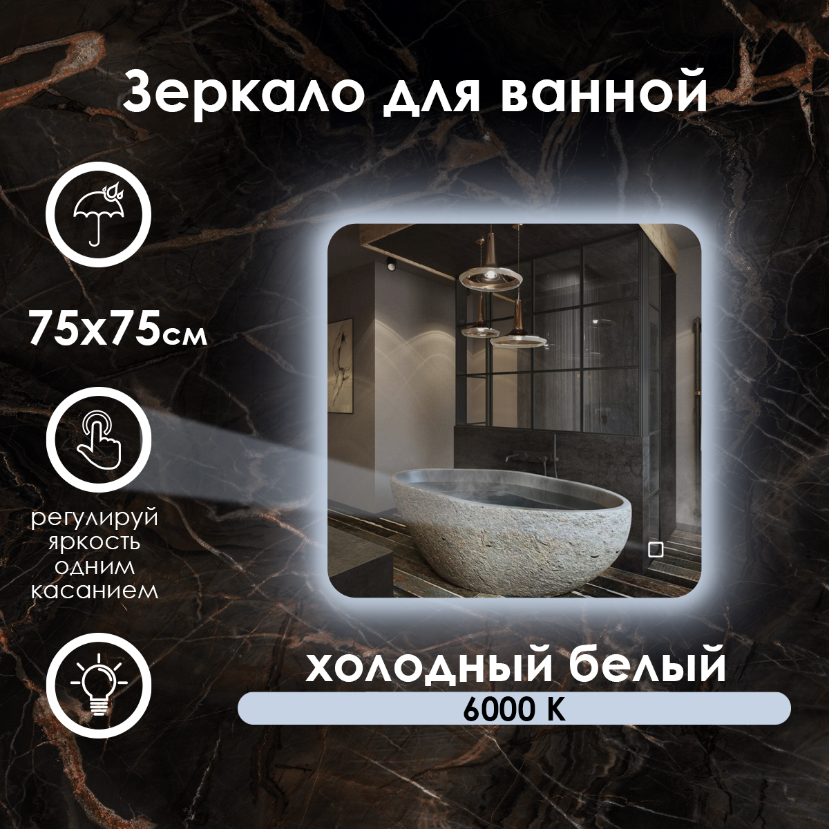 Купить Зеркало настенное Maskota для ванной квадратное скругленное, с парящей подсветкой на стену 6000К, 75х75 см