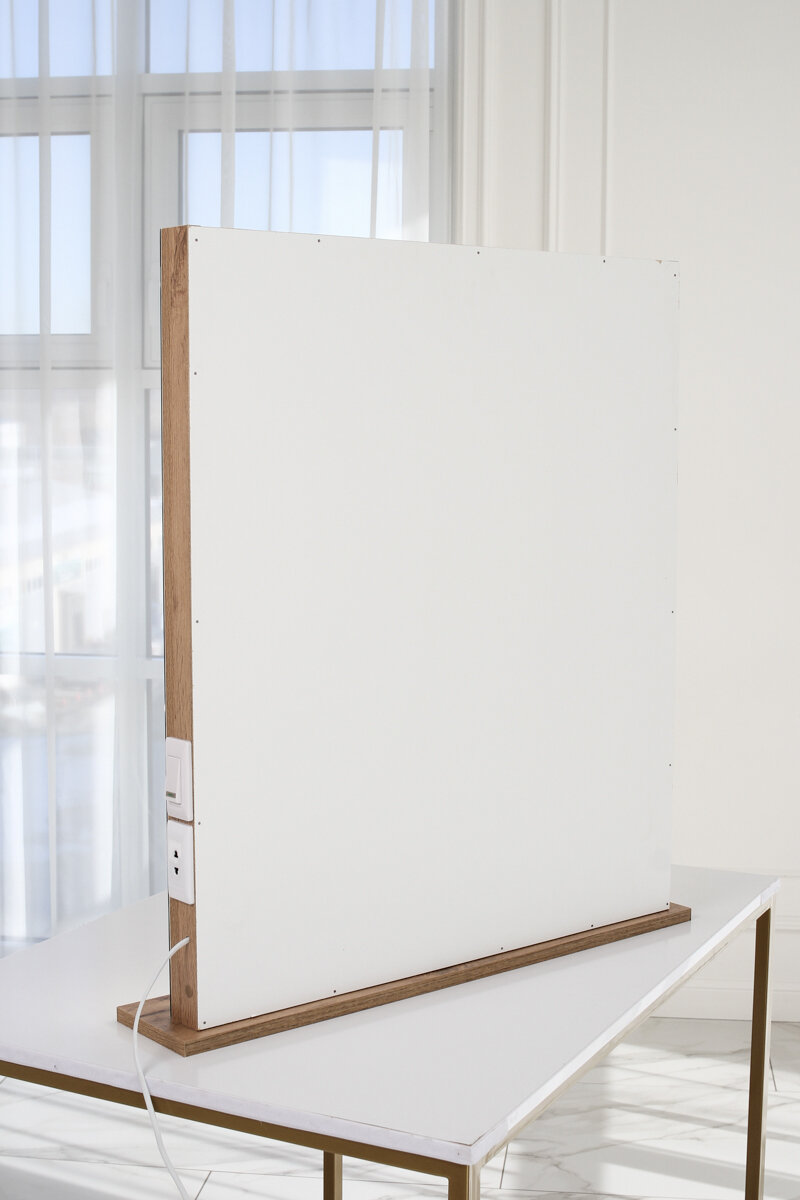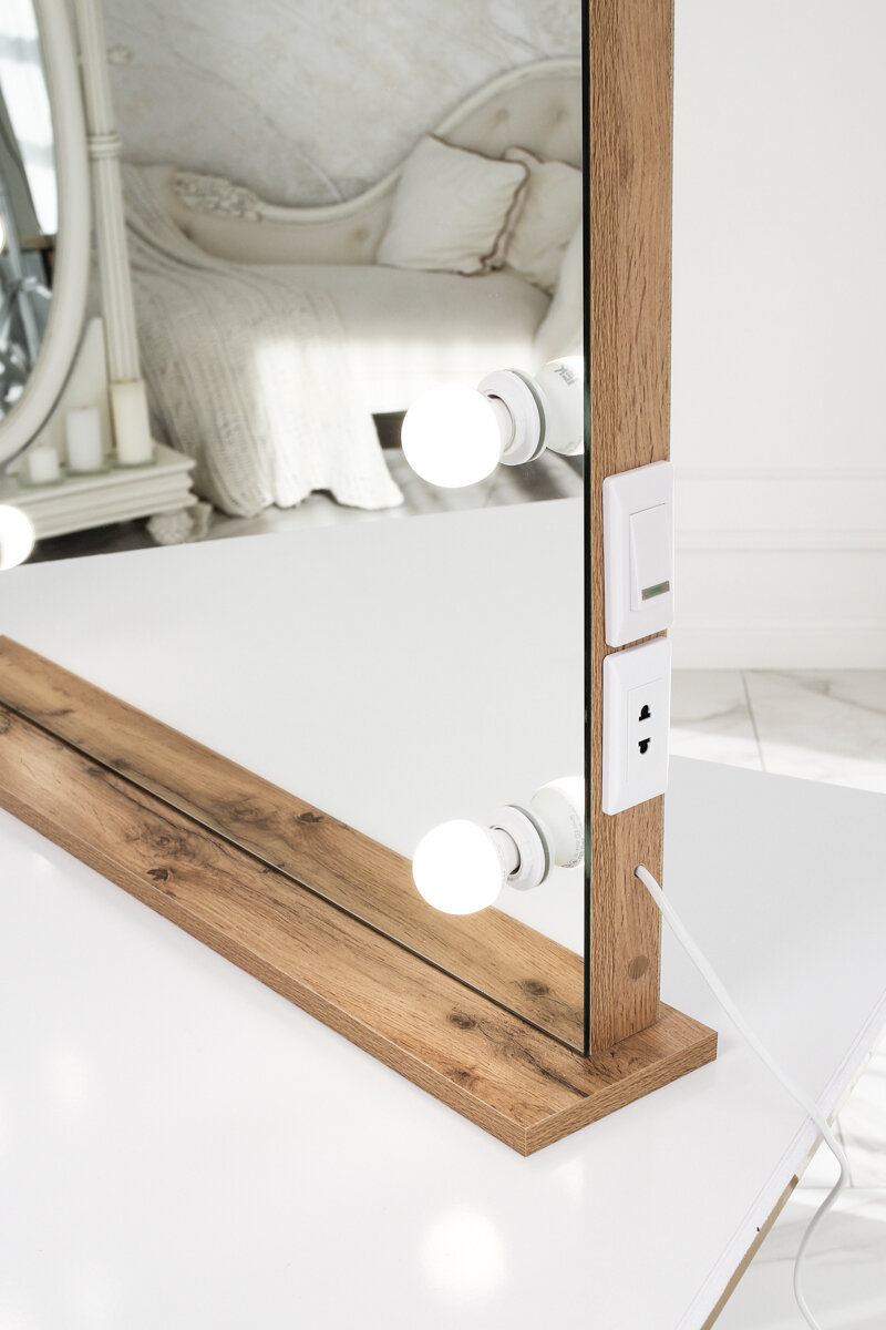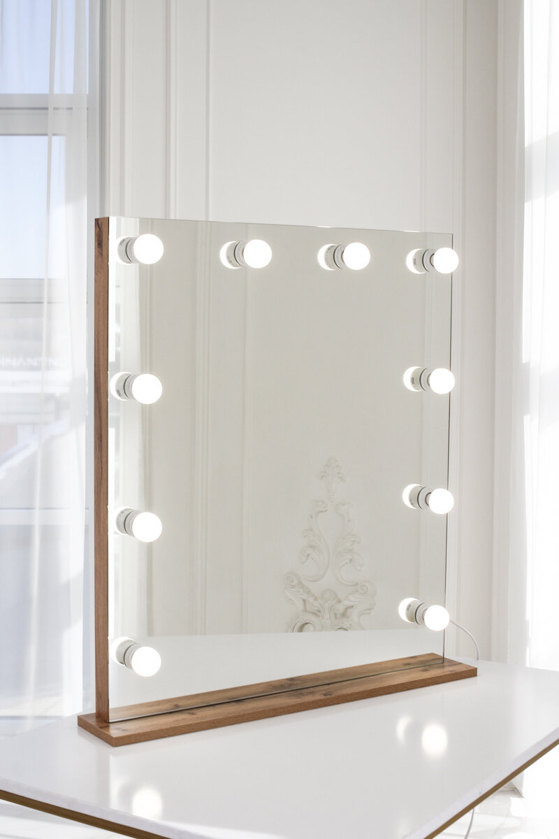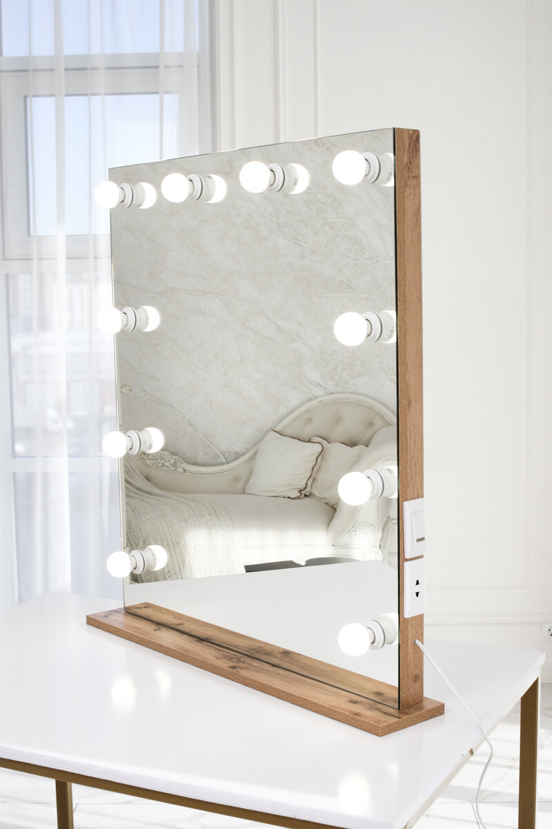 Гримерное зеркало на подставке в раме 80*70см с выключателем и розеткой белое