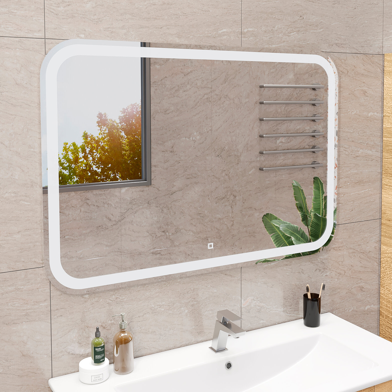 Зеркало настенное для ванной КерамаМане 70*100 см с холодной подсветкой 6000 К с сенсорной кнопкой
