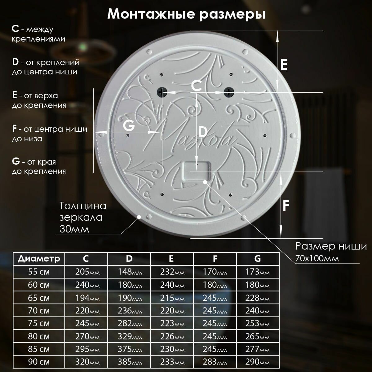 Зеркало настенное для ванной КерамаМане 70*100 см с холодной подсветкой 6000 К с сенсорной кнопкой