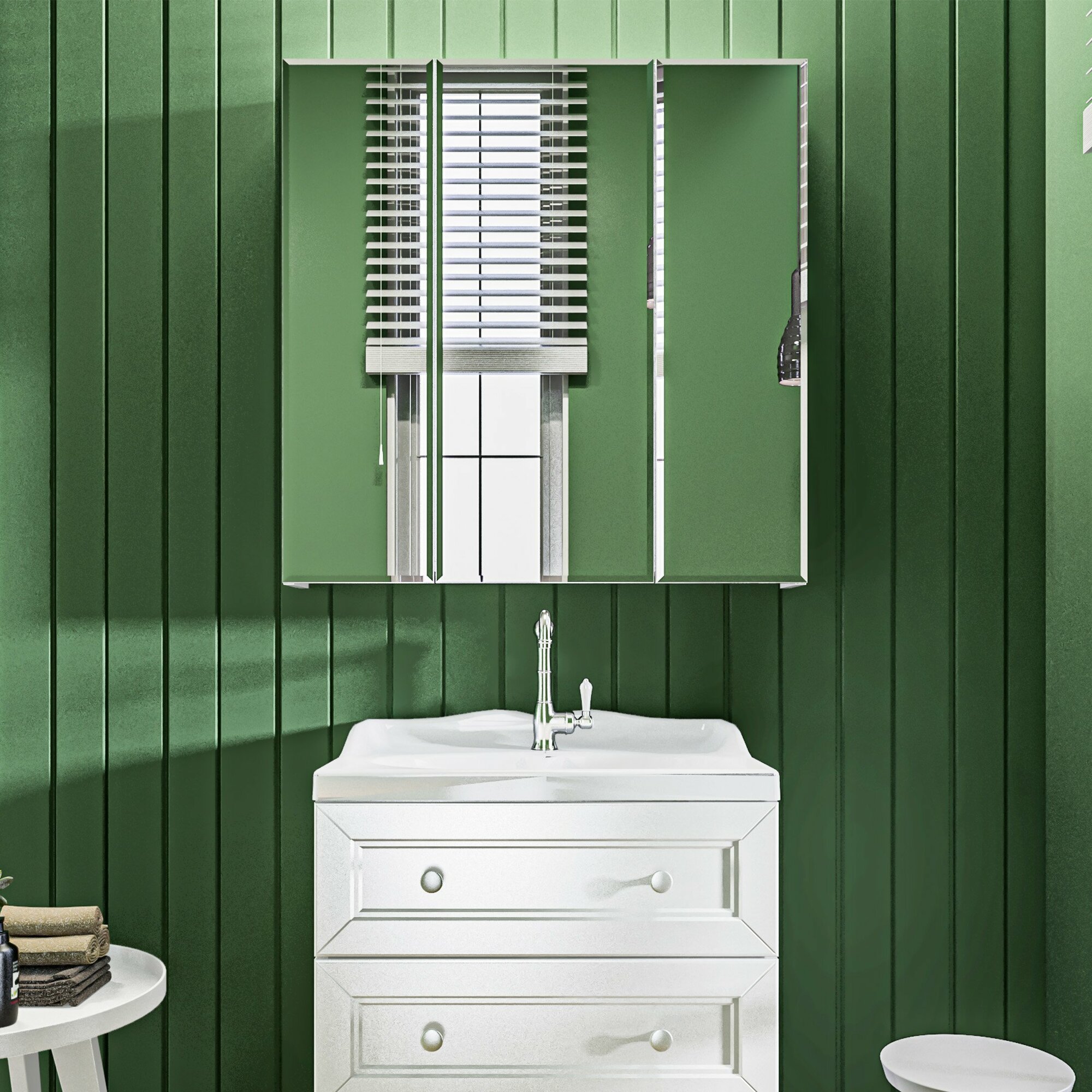 Купить Зеркало-шкаф подвесное 80х80 см в ванную цвет Белый 1Marka У37180МП