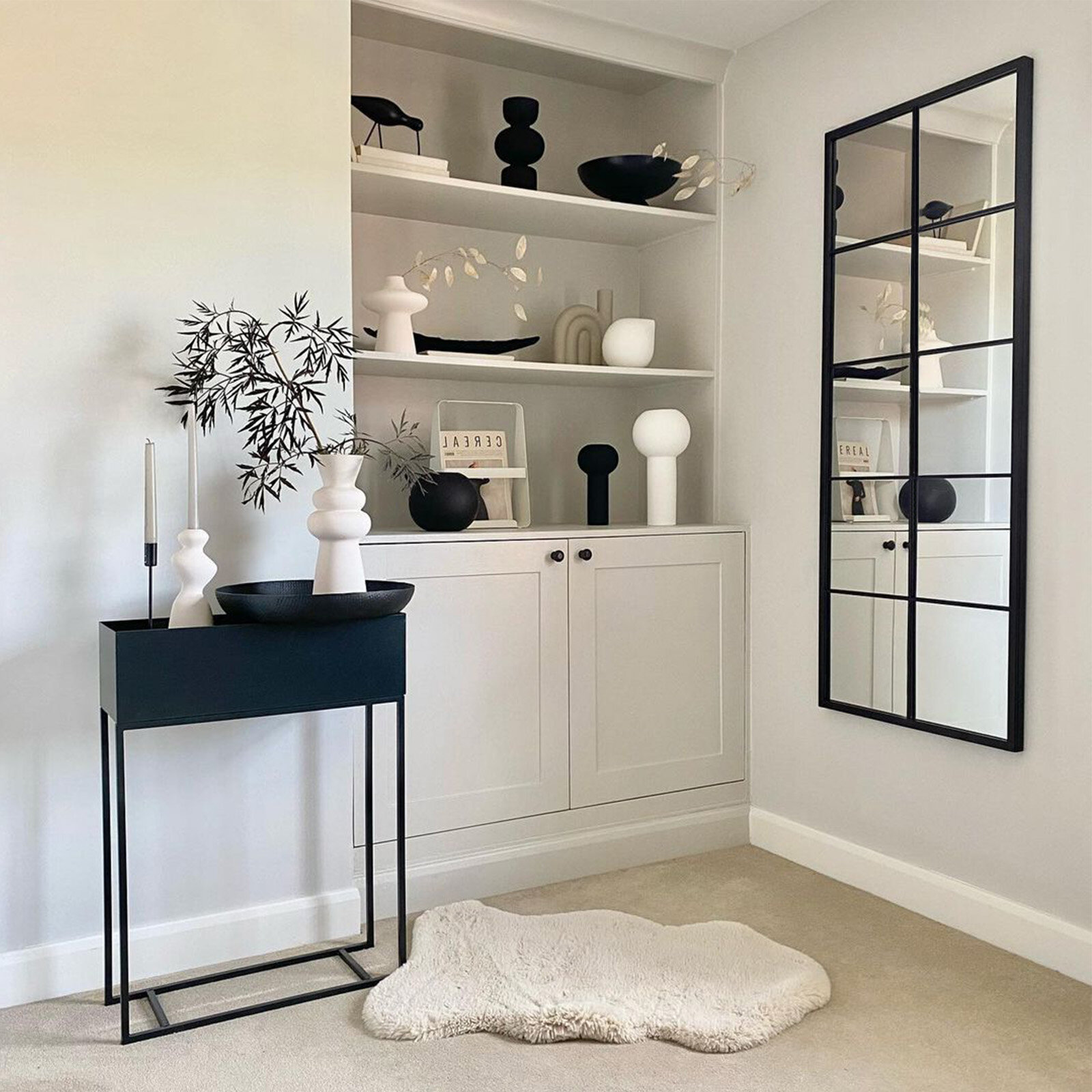 Зеркало настенное в прихожую в черной раме фальш-окно зеркало для интерьера интересное: